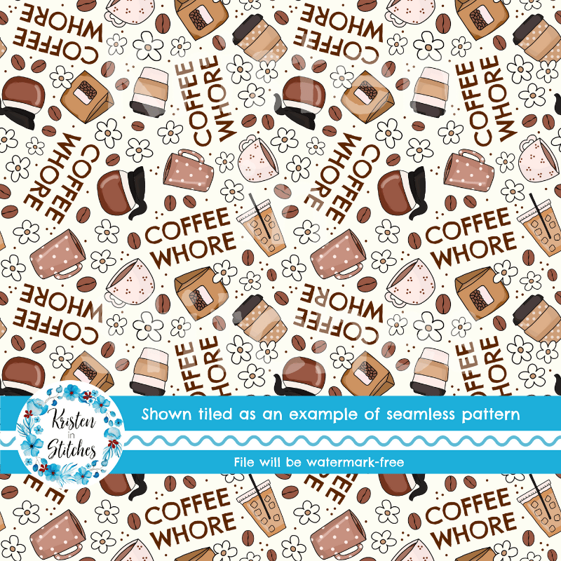 Coffee Whore Sarcastic Sweary Seamless Pattern