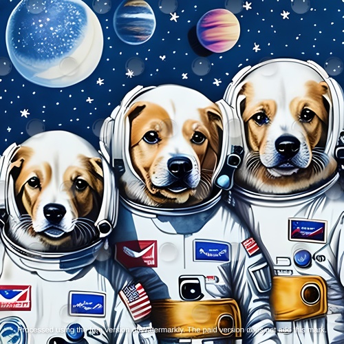 Imagine a group of puppies floating around in space, wearing NASA-grade space suits, and exploring the galaxy.