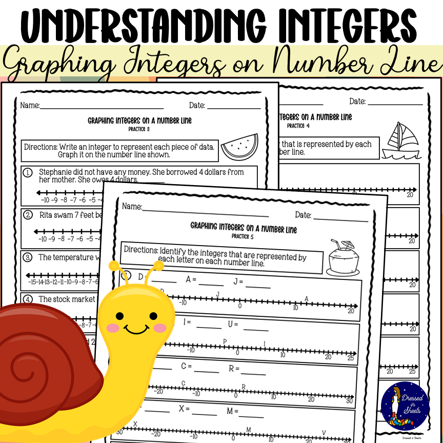 This resource is perfect practice for students who are being introduced to integers. Students will know the difference between a negative number and positive number. Each worksheet contains a number line for visual aid and representation.