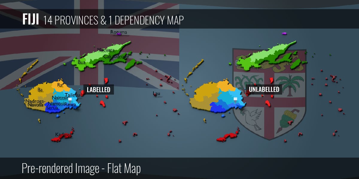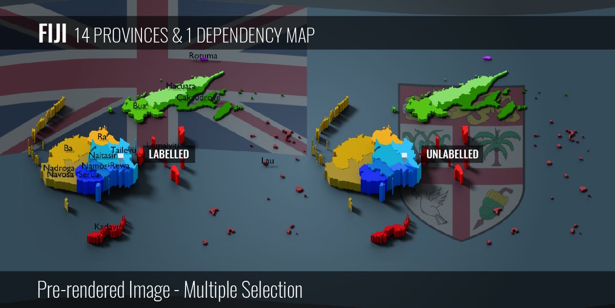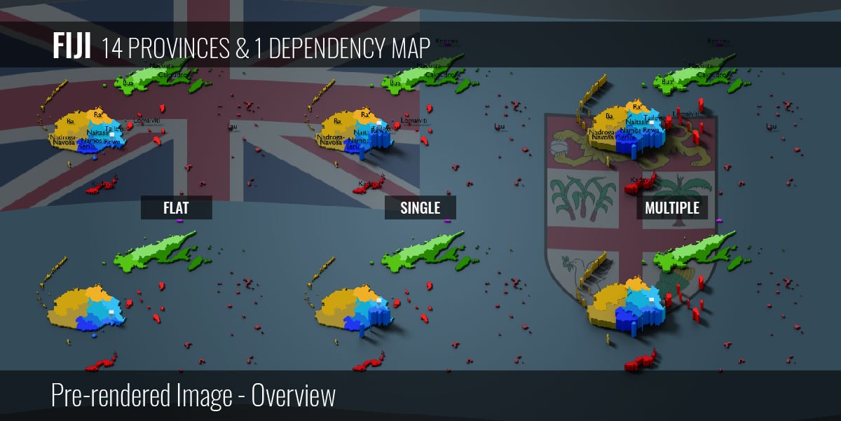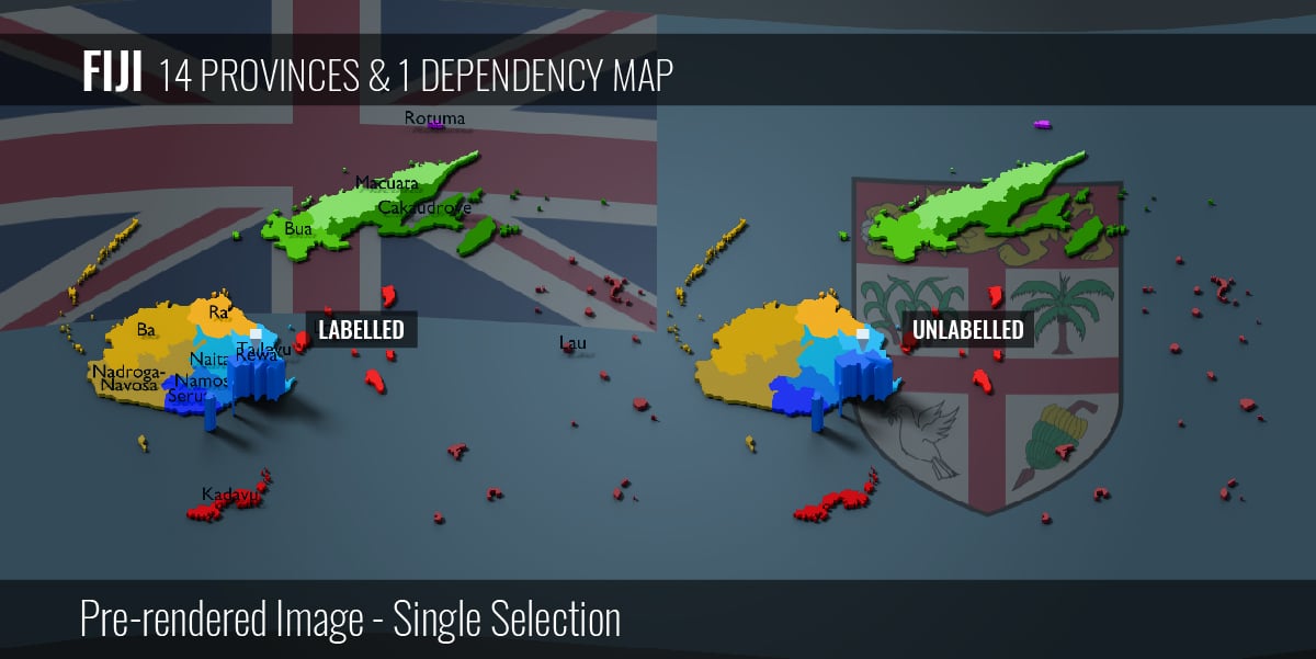 Fiji - 14 Provinces & 1 Dependency Map (3D + Pre-rendered Images)