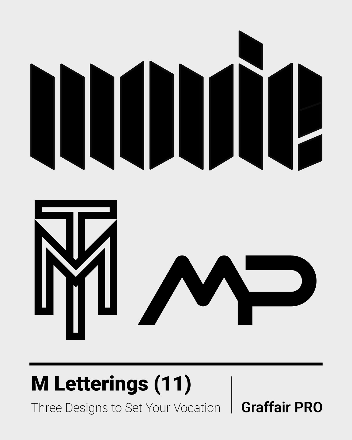 M Letterings (11): The 11th set of "M" logo/letterings includes three original designs. These letterings are part of the "800 SVG Letterings" bundle, which also contains 800 other exceptional designs.