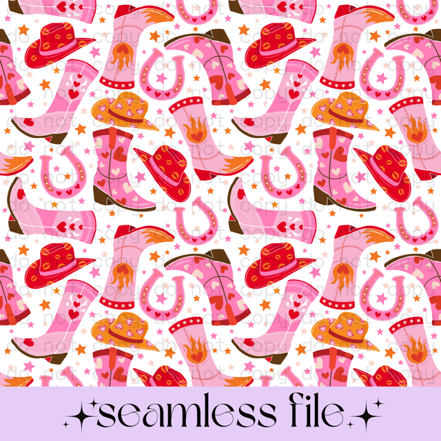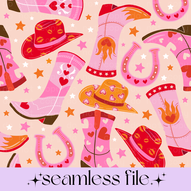 Western Valentine's Seamless Pattern (2 Versions + Free PNGs)