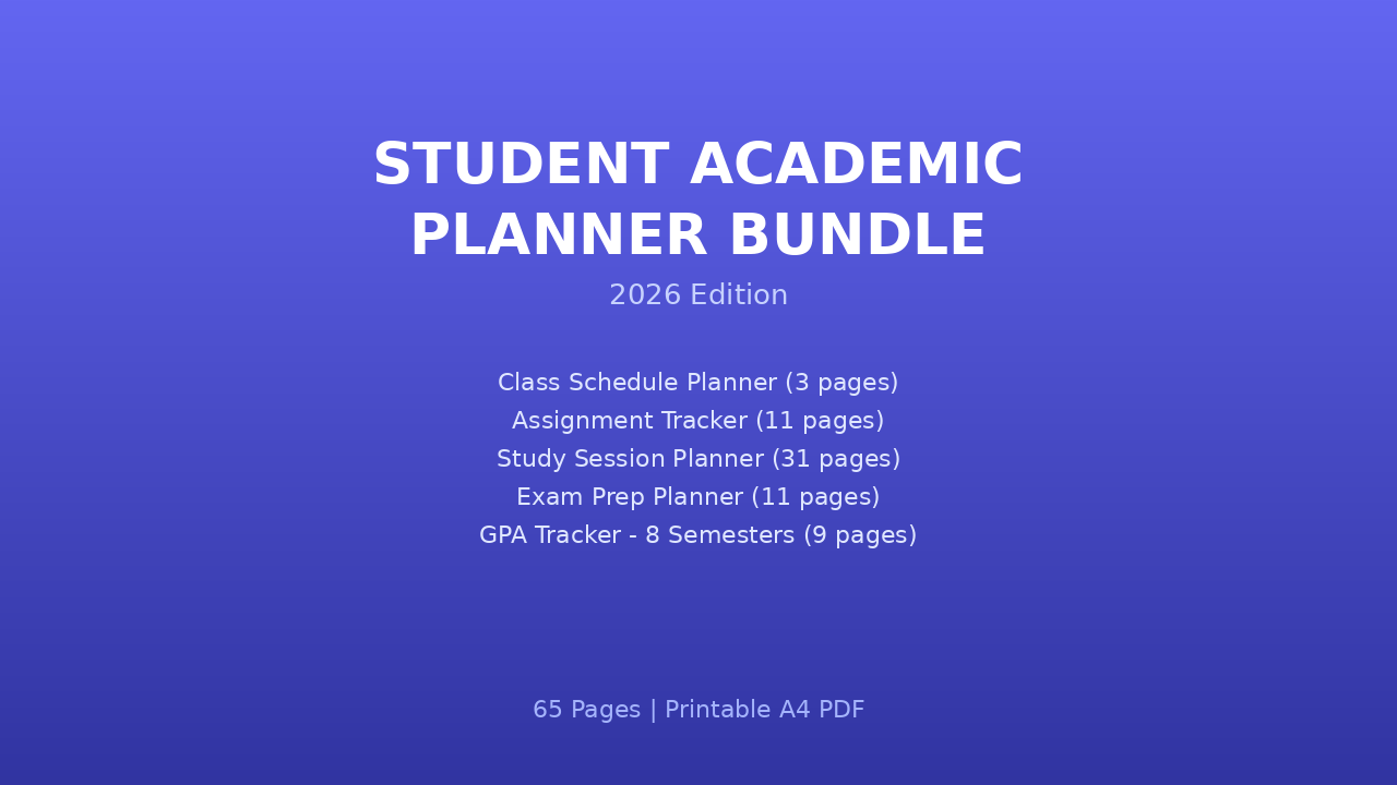 Student Academic Planner Bundle - Class Schedule, Assignment Tracker, Study Planner, Exam Prep, GPA (65 Pages PDF)