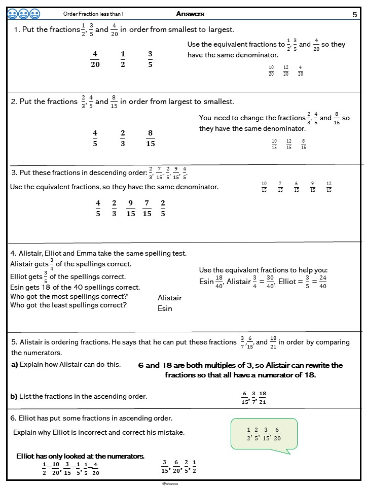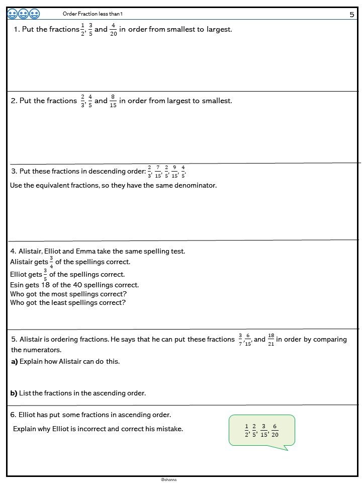 Year 5 Order Fractions
