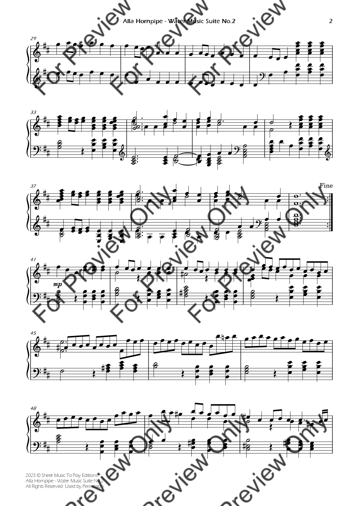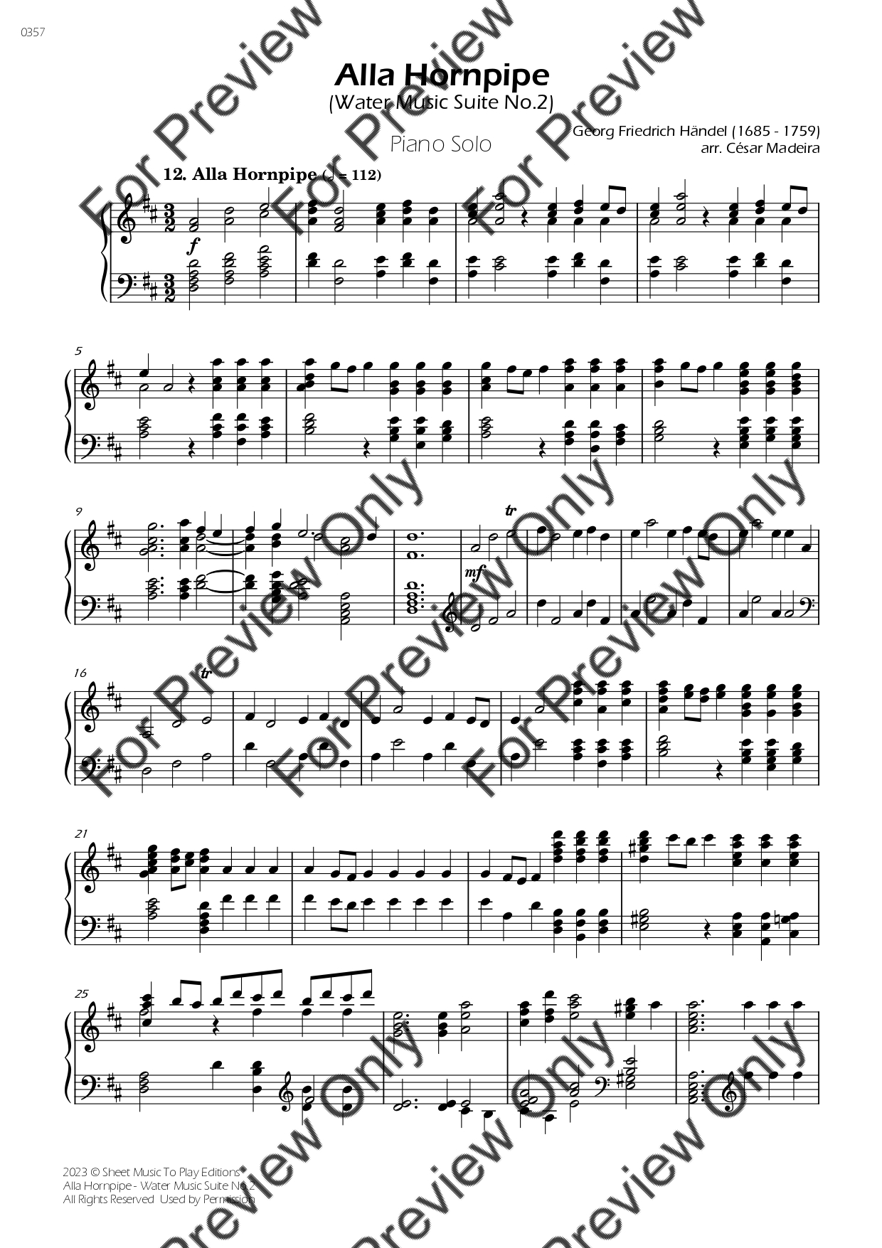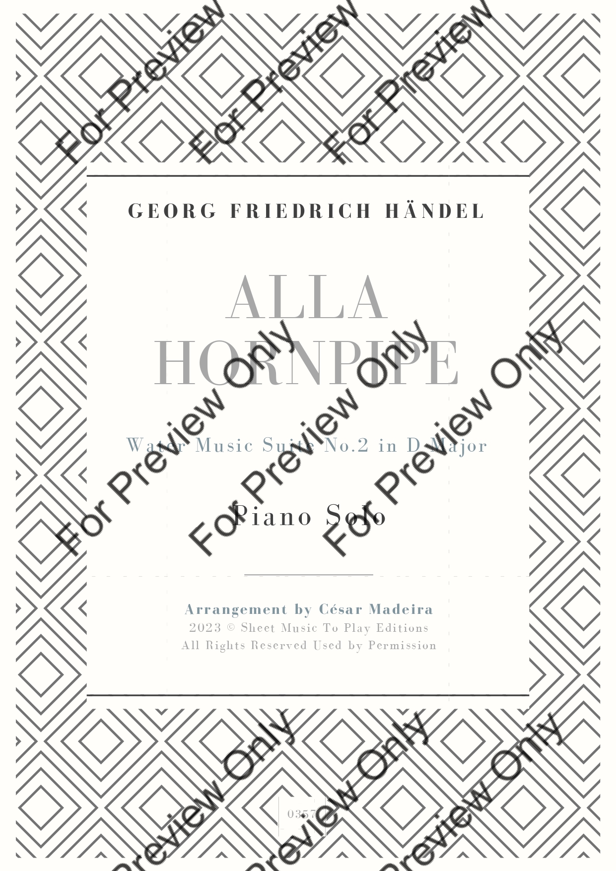 Alla Hornpipe from Water Music Suite No.2 in D Major by Georg Friedrich Handel. Arrangement for Piano Solo. With Full Score. Have fun!