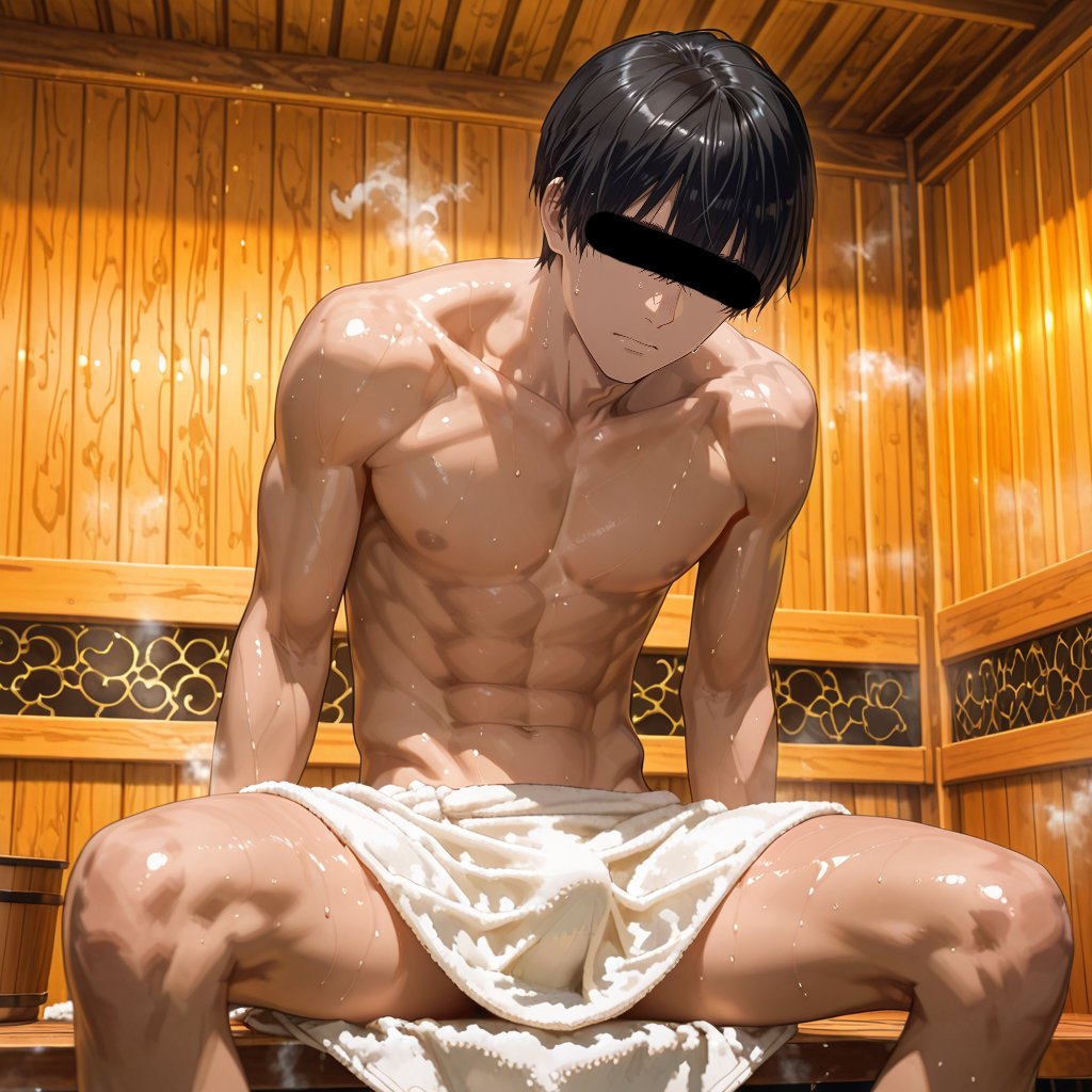 サウナで「整う」をテーマに、男らしいキャラクターの魅力を思い切って表現しました。