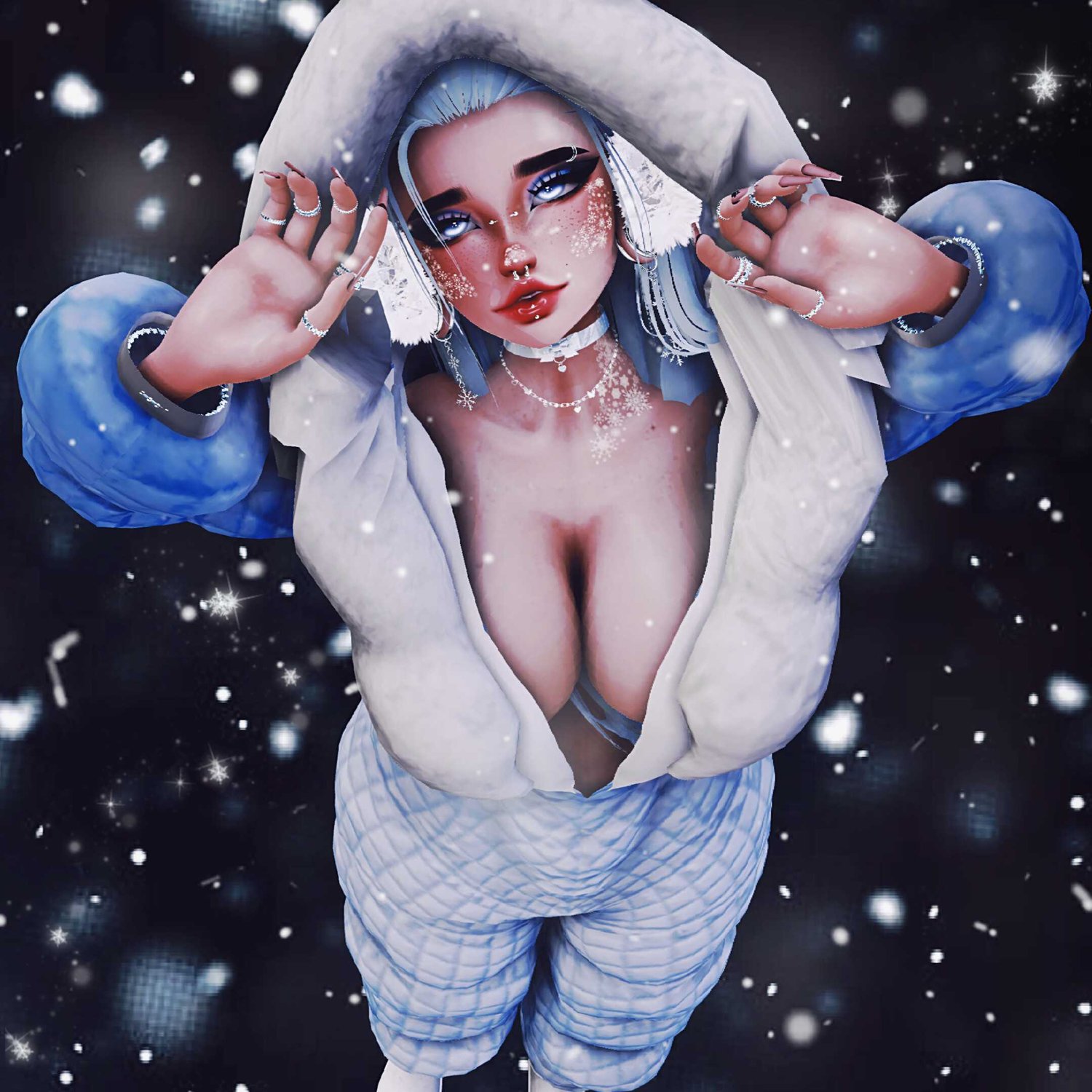 Accessories: Snowflakes, Goggles, Snowflake necklace, Fur hat, Mittens, Bow choker, Pearl necklace, Bag, Nails + rings + bracelet, Bear tail + ears, Snowflake earrings + mouth chain, Shawl