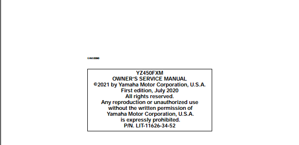 2021 Yamaha YZ450FX YZ450FXM Owners Service Manual Part No. LIT-11626-34-52