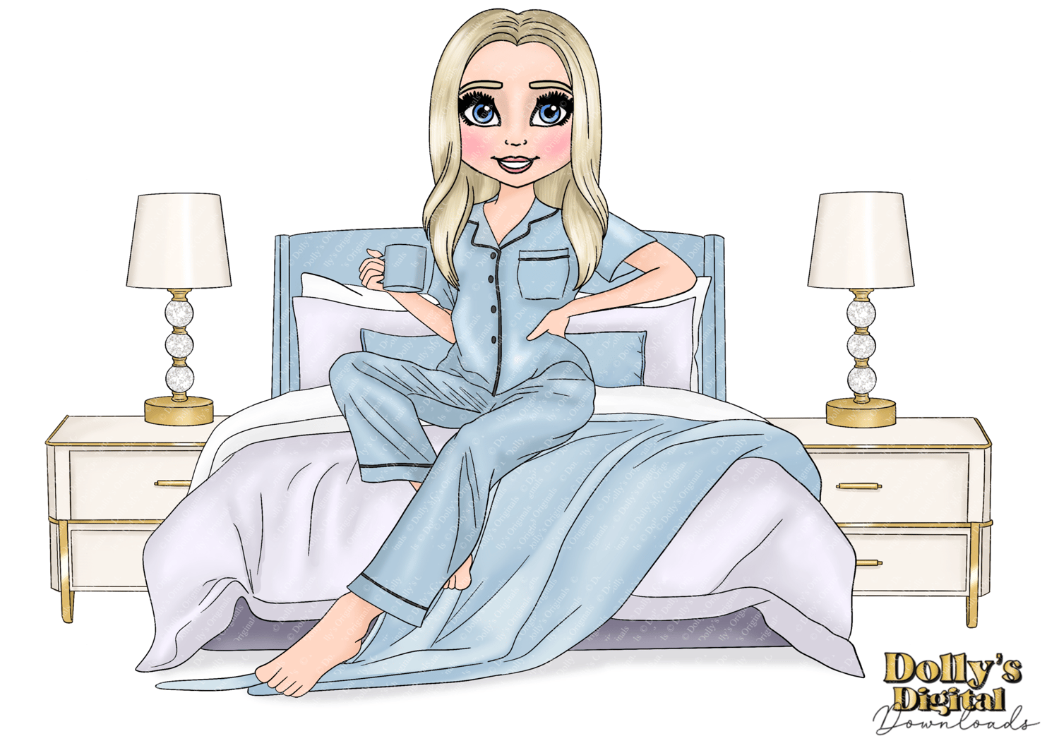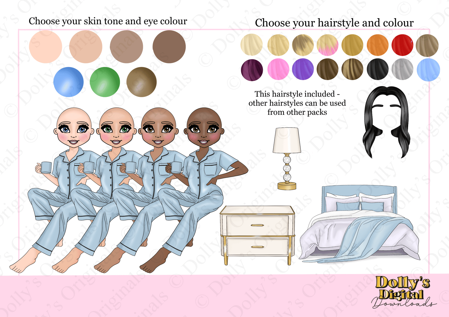 Instant digital download of our Powder Blue Silk Pyjamas Doll Character Bundle PNG (35 PNG’s)