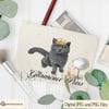 Add a touch of feline flair and humour to your product line with our "Glamour Puss Cat Design Set." This charming collection includes four designs, featuring a ginger cat and a black cat, each adorned with a glittery tiara. Two of these designs are textless, showcasing just the cats in their regal accessories, while the other two are embellished with the playful wording "Glamour Puss." Perfect for light-hearted, fun products, these designs are ideal for makeup bags, mugs, cards, and much more. Available in high-quality JPEG and PNG formats, they are ready for a variety of creative applications.