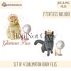 Glamour Puss Cat Design Set - 4 Whimsical Cat Illustrations with Glittery Tiaras