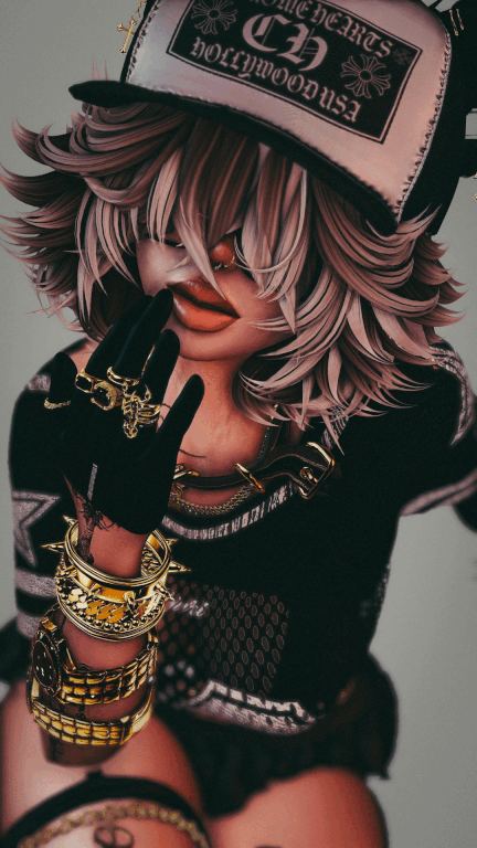 Toggles: Arm Accessories, Bag, Belt, Cat Plushie, Chunky Rings, Collar, Cuban Chain, Face Bandages, Fishnet Suit, Glasses, Gloves, Hair Bow, Harness, Hat, Headphones, Leg Wraps, Mouth Cage, Panther Ears, Panties, Pasties, Scarf, Sleep Mask, Stickers, Tail, Thigh Chain, Waist Belt, Yarn Ball, Jeans 2, Chrome Jeans, Shorts, Skirt, Curls, Ponytail, Bushy, Fancy, Heels, Converse, High Boots, Jersey, Sweat, Tank Top, Star under, unders 2
