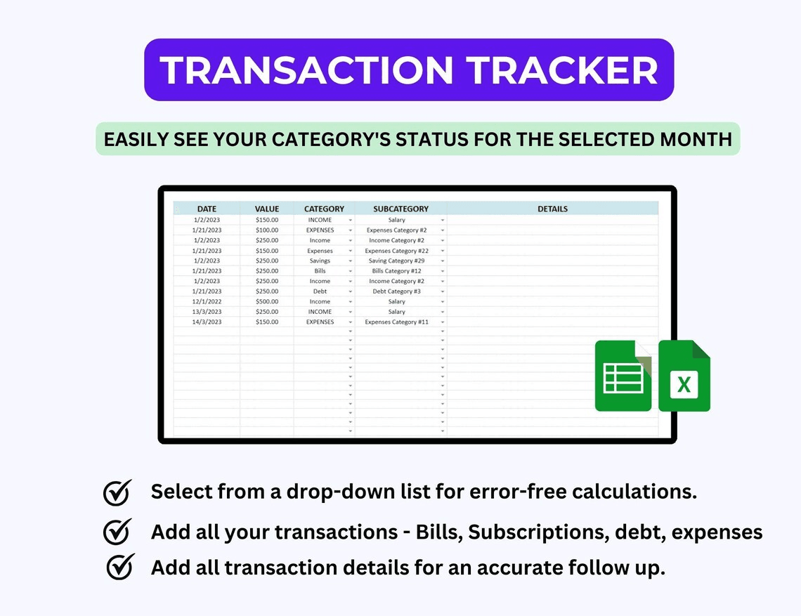 • Google Sheets + Excel formats included