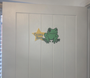 You can choose to have Caleb on his own, sitting proudly as a wall or door decoration — or add one of our personalised name plaques to make it completely unique! Perfect for names like “Noah’s Room”, “Bathroom”, or even “Frog Fan Zone” — the choice is all yours.