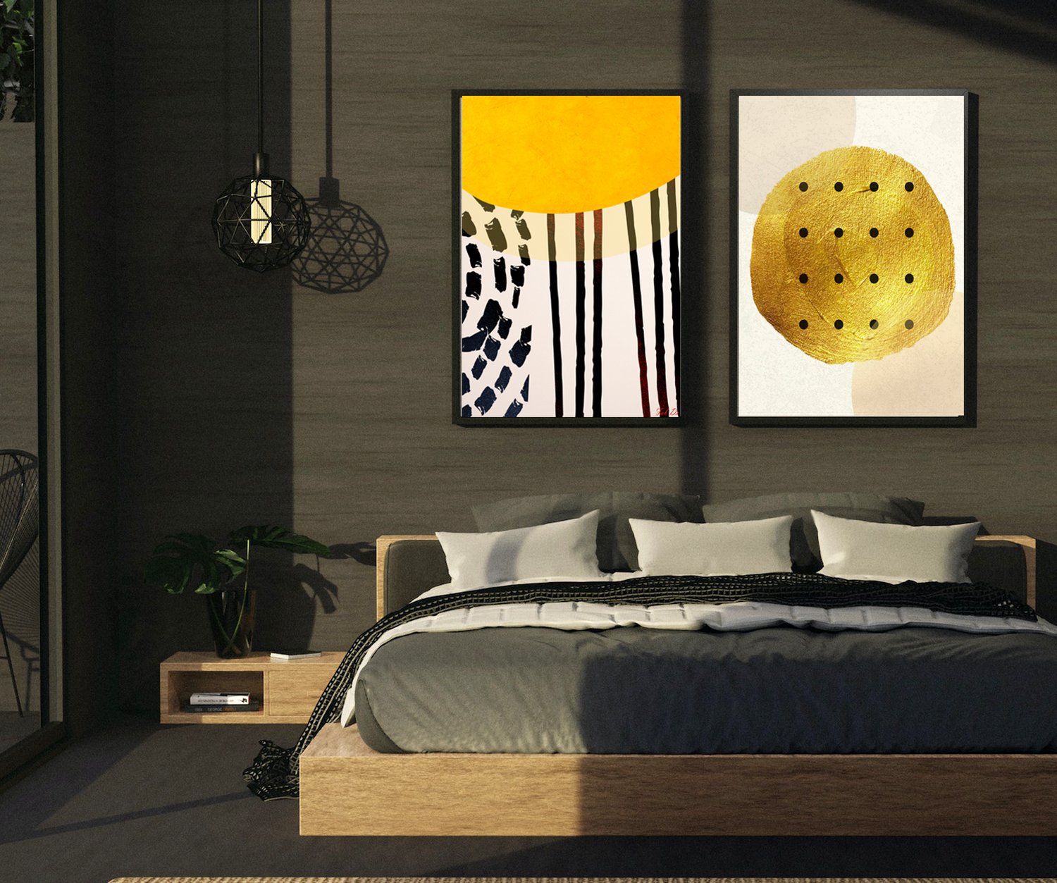 African Tribal Wall Art printables, Set of 02, African Abstract Digital Art, Modern Afro Ethnic prints, Yellow , Black, and Gold African posters.