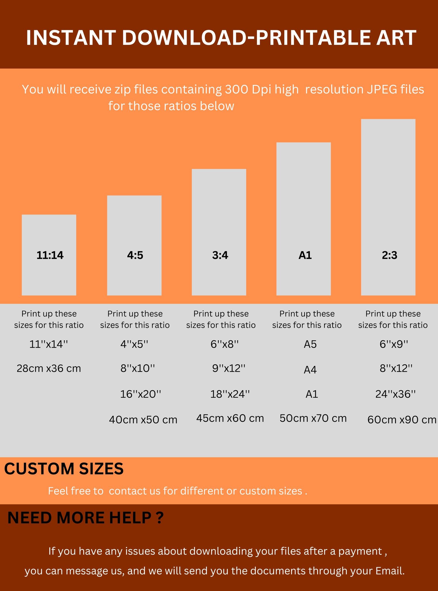 These wall arts can be printed at up to any of these sizes with the same ratio: