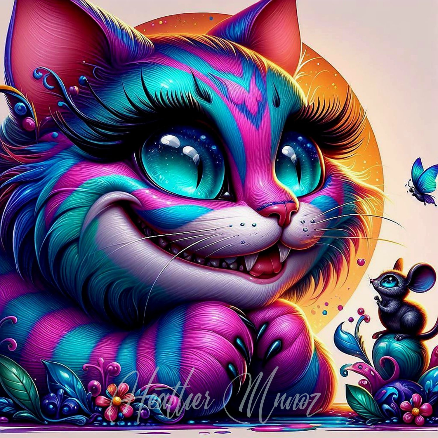 Whimsy colorful Cheshire Cat up to no good! 💜