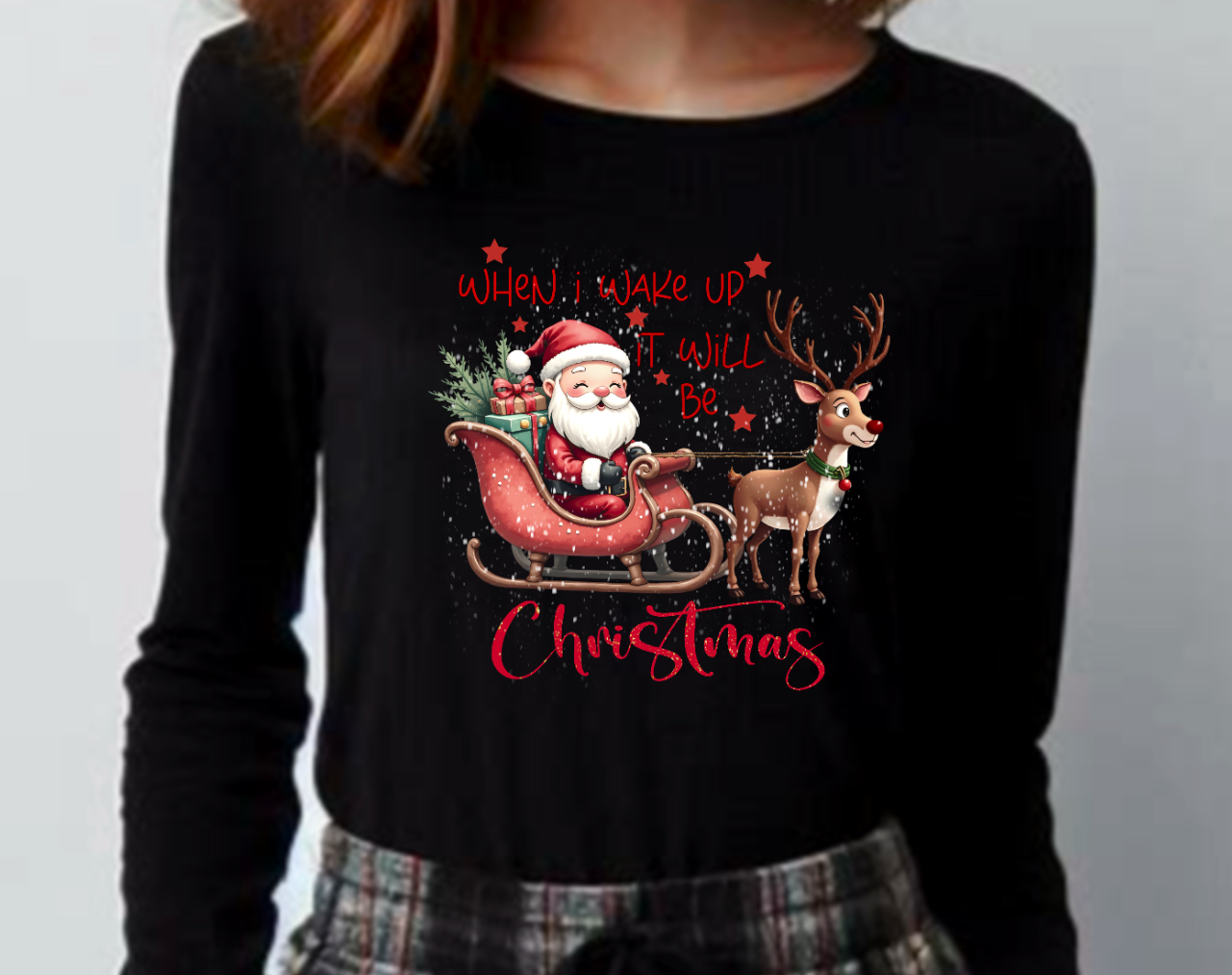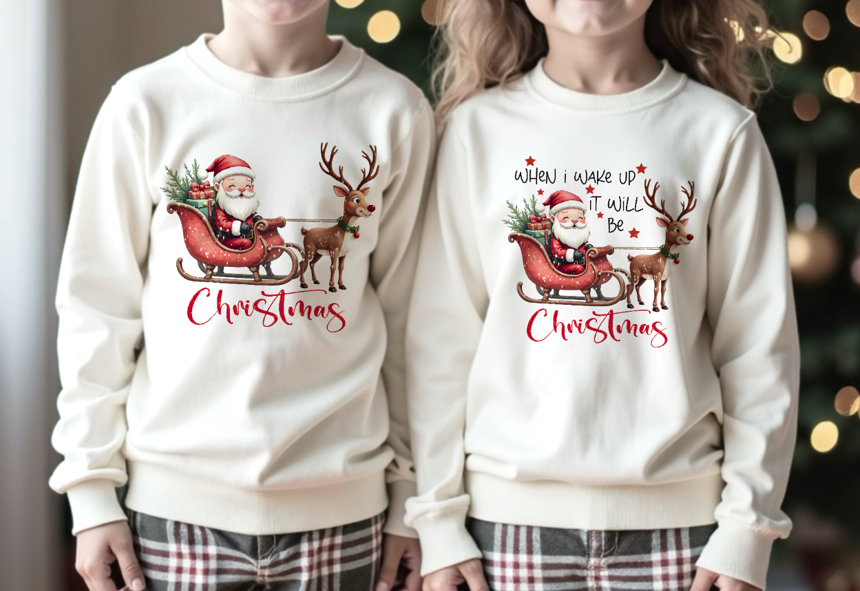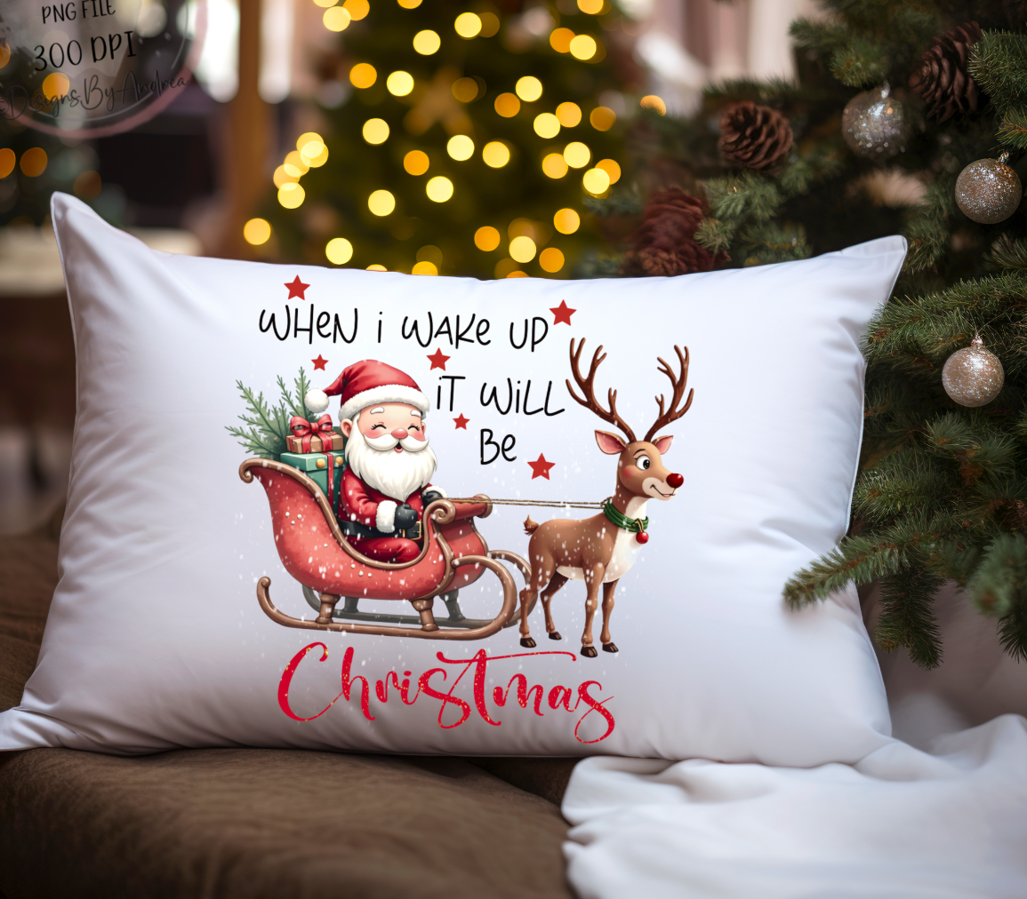 Christmas design, 2 with ‘When I wake up’ text (red/black)and one with just ‘Christmas’, 3 PNGs, Sublimation, print, DTF etc Christmas PNG.