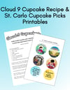 St. Carlo Printable Cupcake Picks with original art & quotations from the saint, plus delicious recipe for Cloud 9 Cupcakes: Fluffy Vanilla Nutella Swirl Cupcakes with Italian Meringue Frosting!