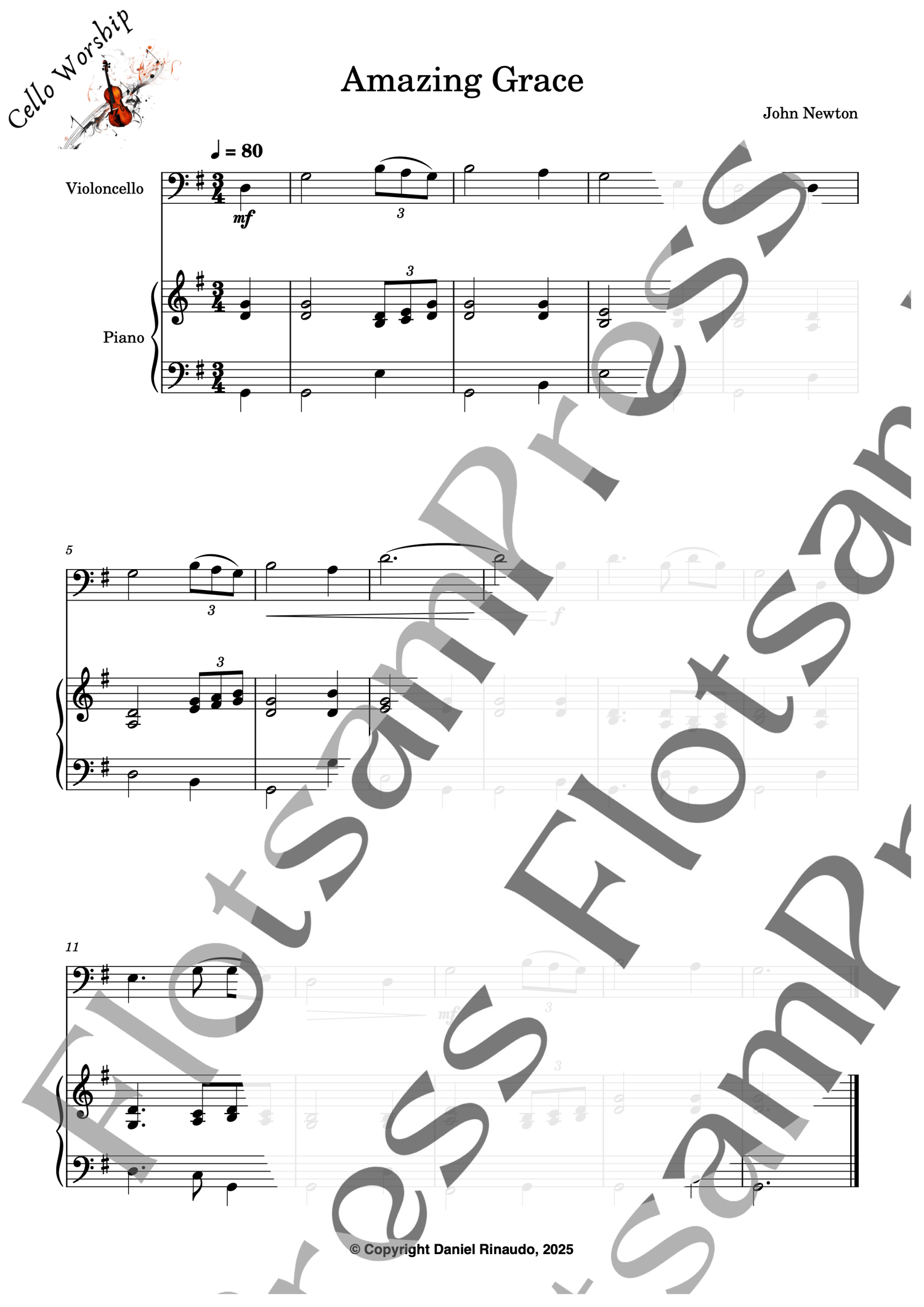 This arrangement of Amazing Grace is written for beginner to lower-intermediate cello players, with a simple and supportive piano accompaniment. Perfect for church services, lessons, or home practice.