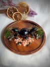 Tento oltář je zasvěcen archetypu Trojité Bohyně – Panny, Matky a Stařeny – ve formě černého obsidiánu. Ve středu stojí obsidiánová koule, po stranách ji doplňují srpky měsíce, čímž vzniká mocný symbol ženské cykličnosti, intuice a spirituální síly.