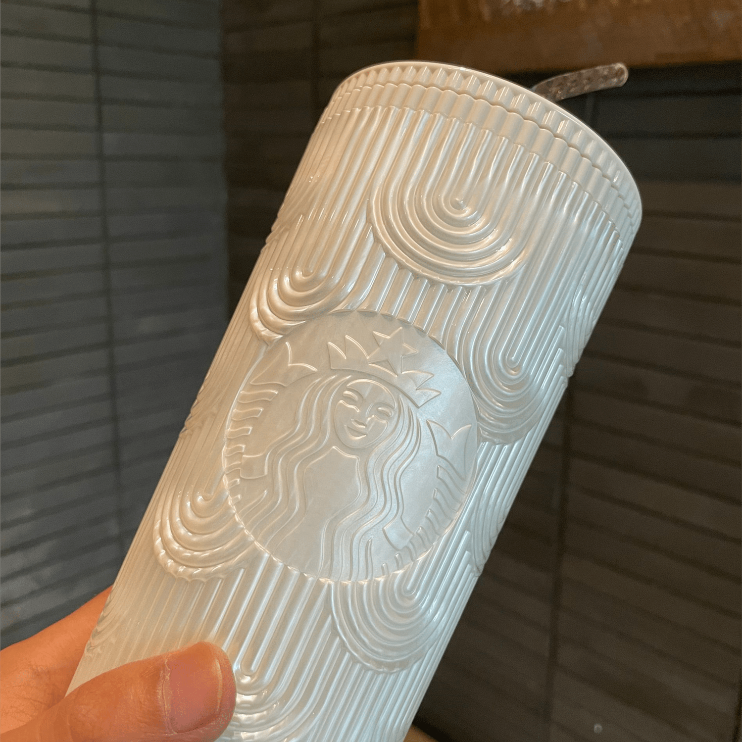 - This authentic Starbucks cup of this model has a curved straw (as shown in the photos)
