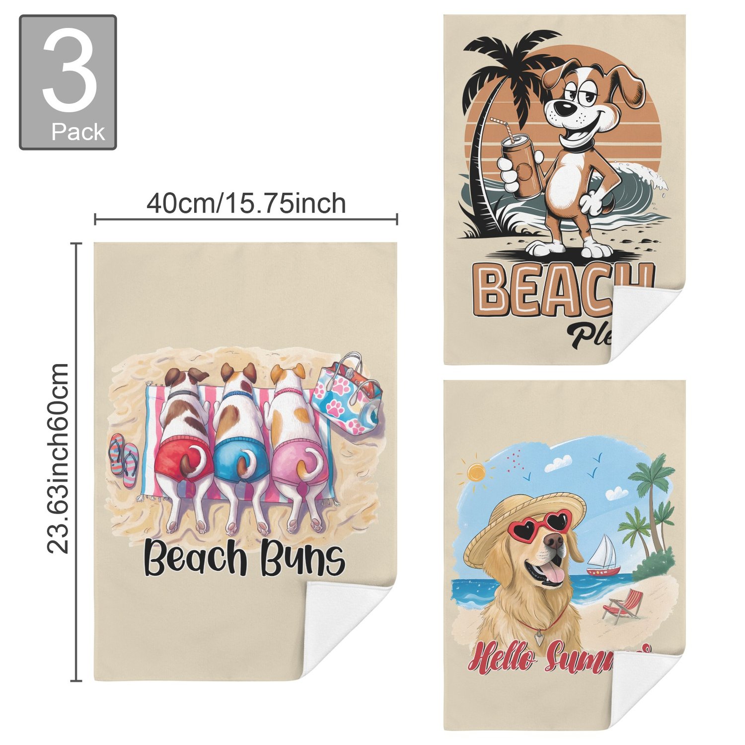 Summer Beach Dog Multi Towel Set Towel 40x60cm (Set of 3)