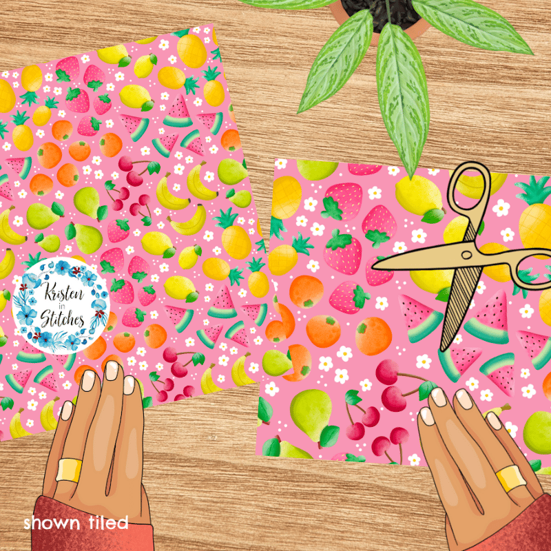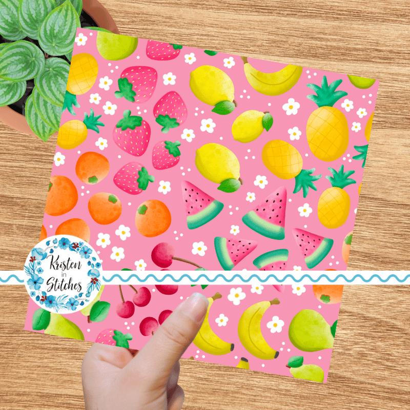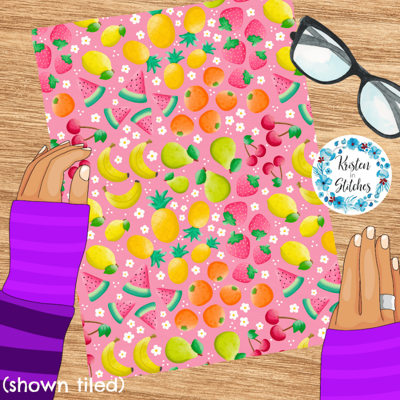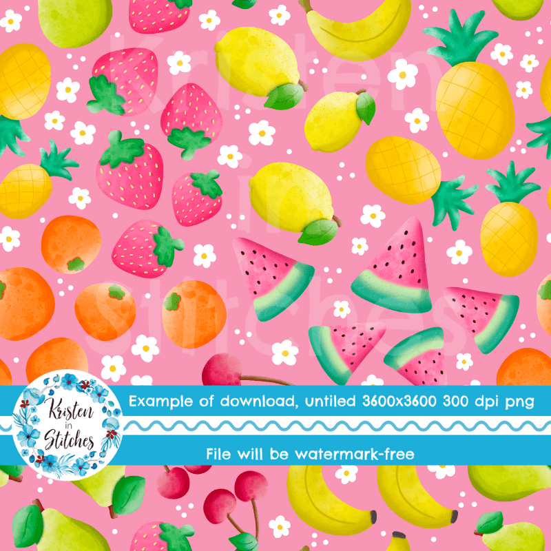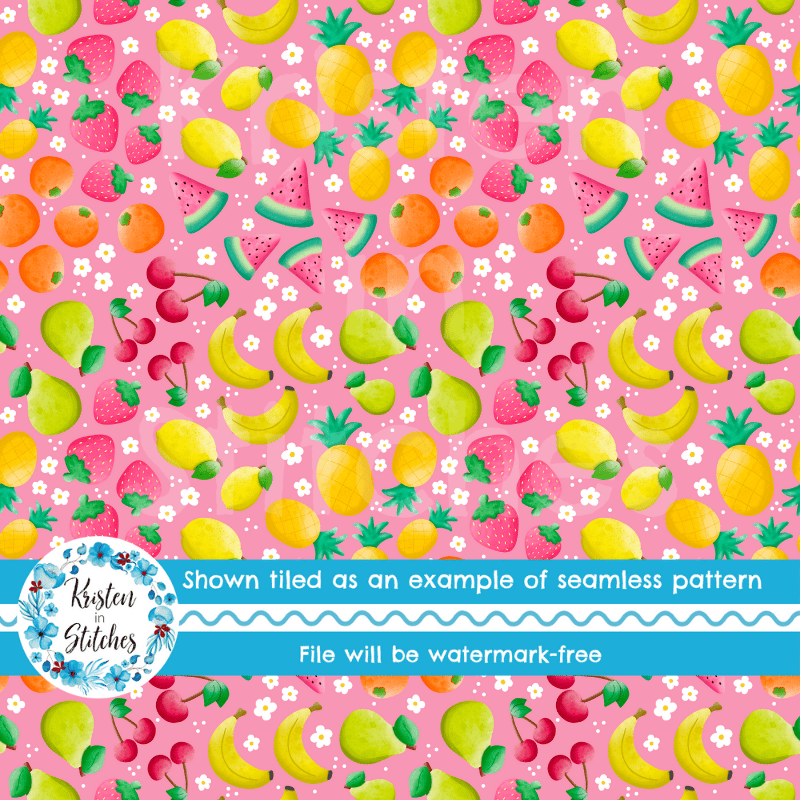 Summer Fruit Floral Seamless Pattern, Watermelon, Cherries, Strawberries, Pineapple