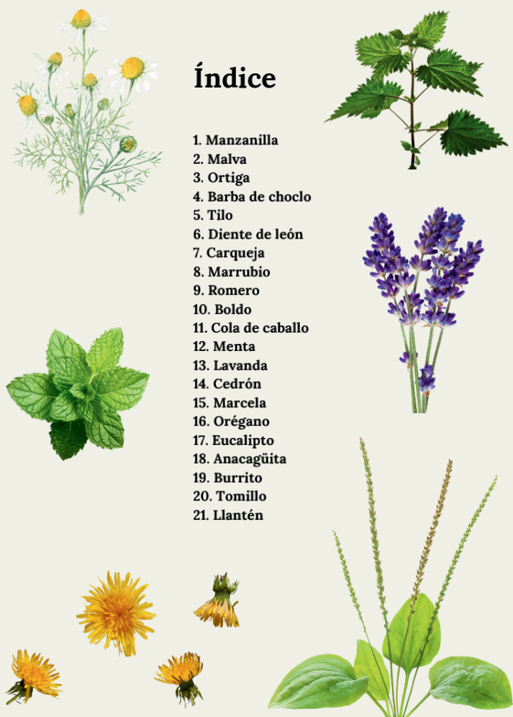 Este libro nace del corazón, de la vida en el campo y del amor profundo por las plantas que me transmitió mi abuela. En él comparto el uso tradicional de 21 plantas medicinales —como la manzanilla, el romero, el llantén, el boldo y muchas más— con sus propiedades, formas de preparación y recetas que forman parte de mi día a día.