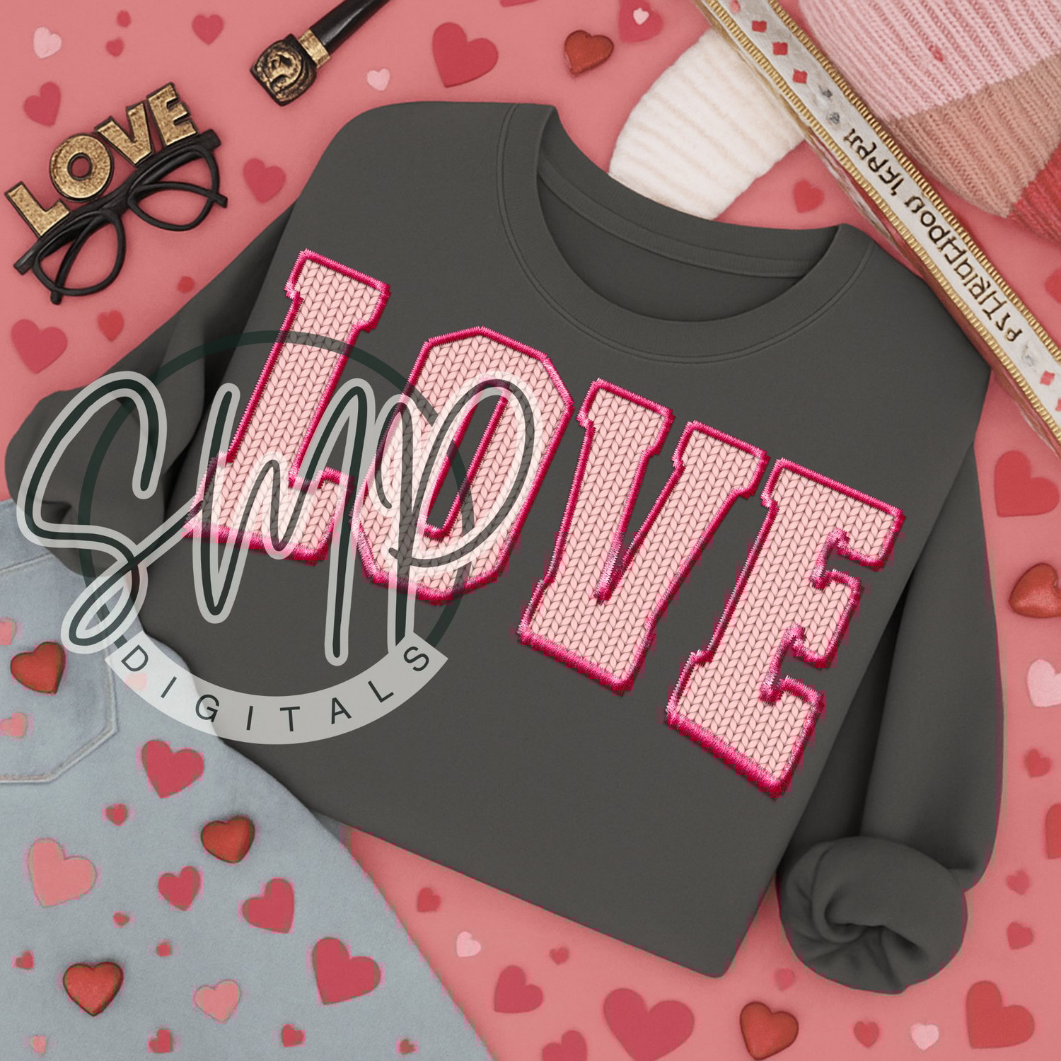 Light Pink LOVE Faux Embroidery & Seersucker Digital