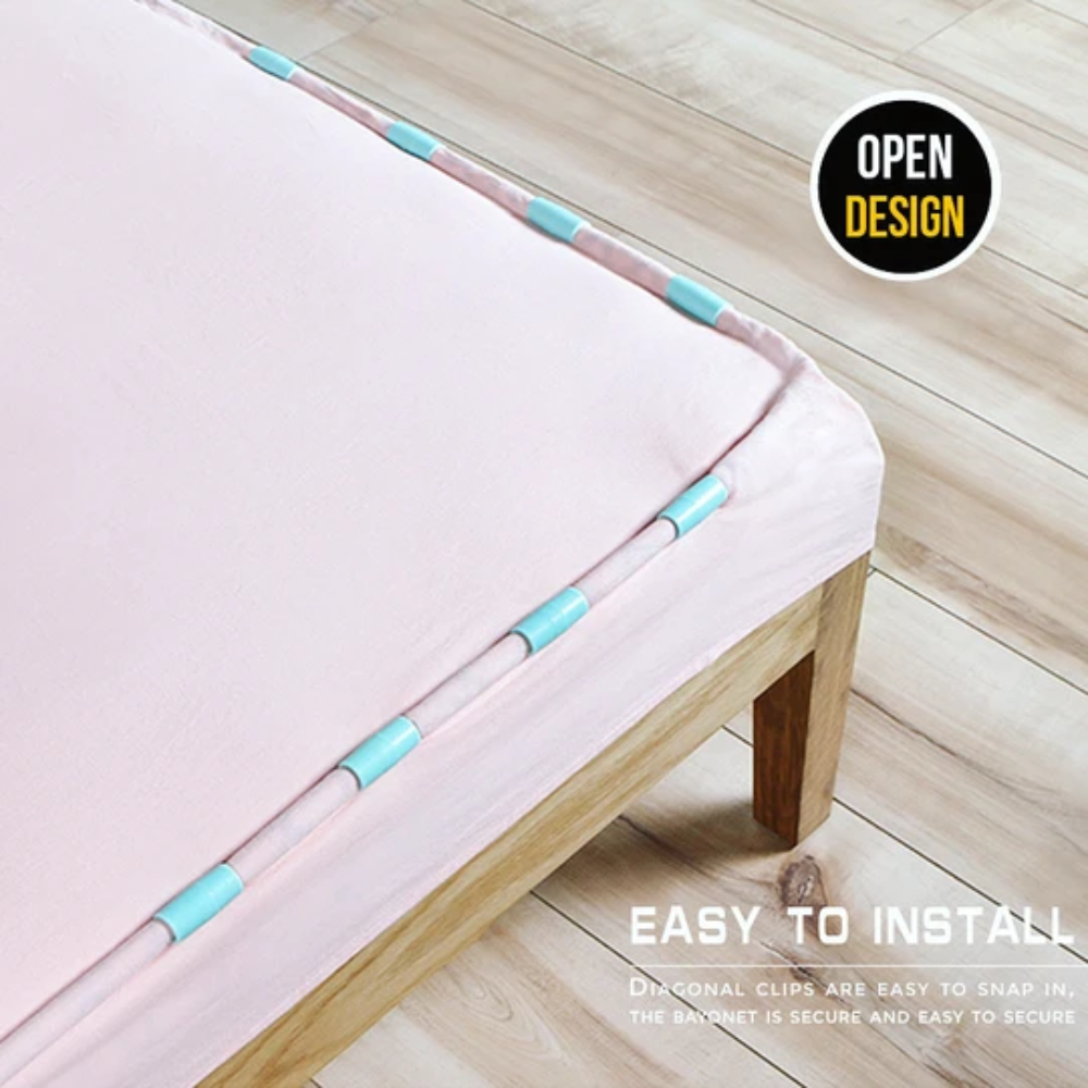 ➤HOLD SHEETS TIGHT-The built-in plastic clenching system protects the fabric from harm and holds sheets in place, including fitted sheets, flat sheets, mattress pads, bed sheets, mattress pads, tablecloths, ironing board covers, slipcovers, and more. Fully adjustable to ensure a snug fit.