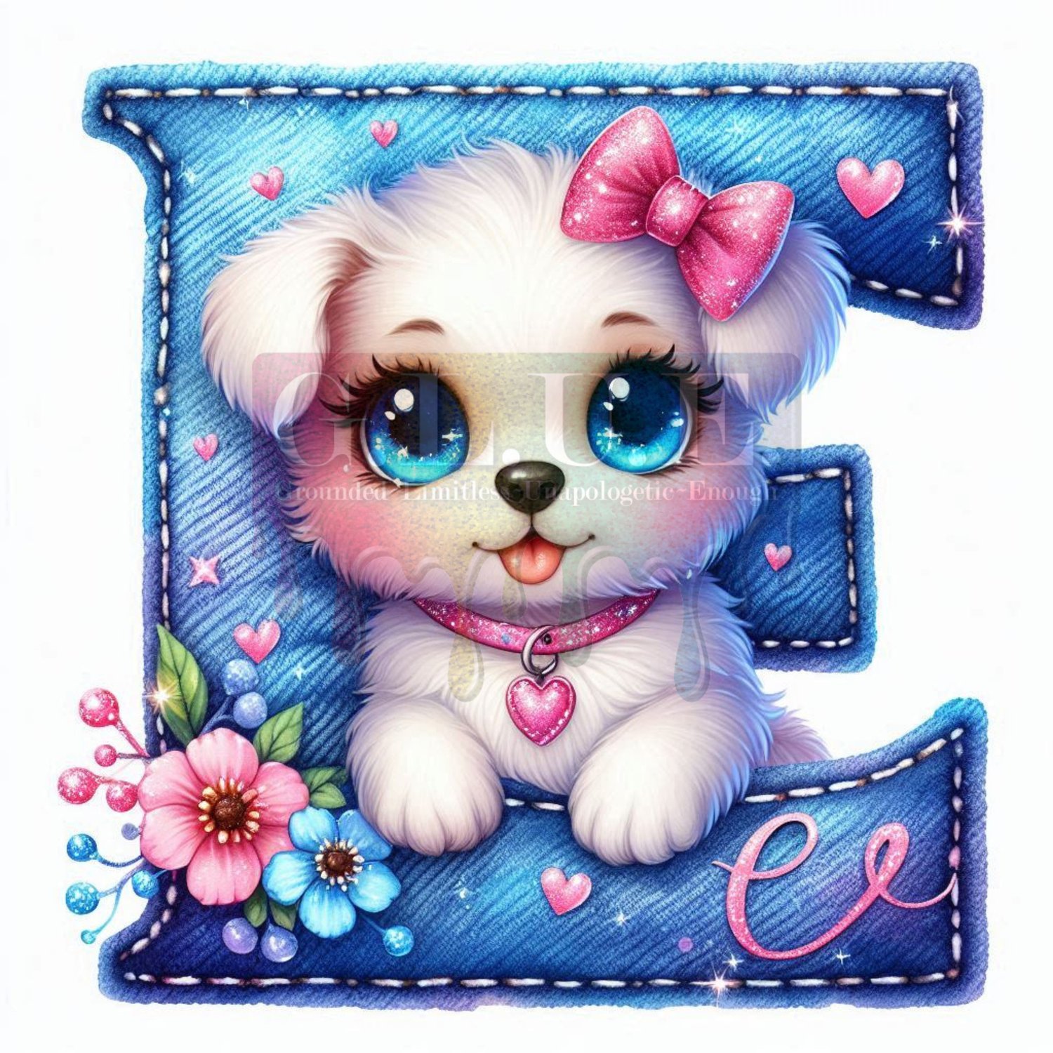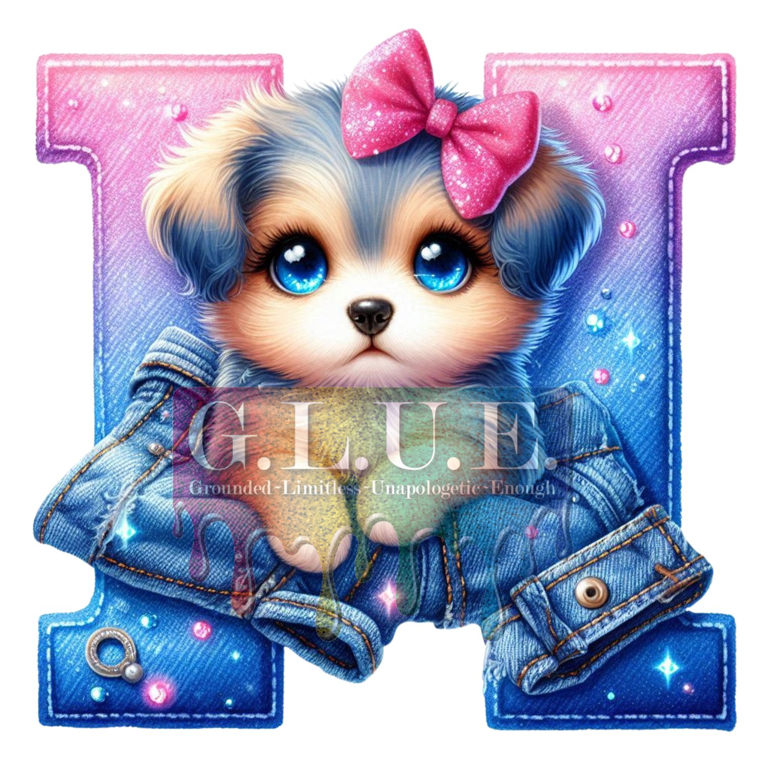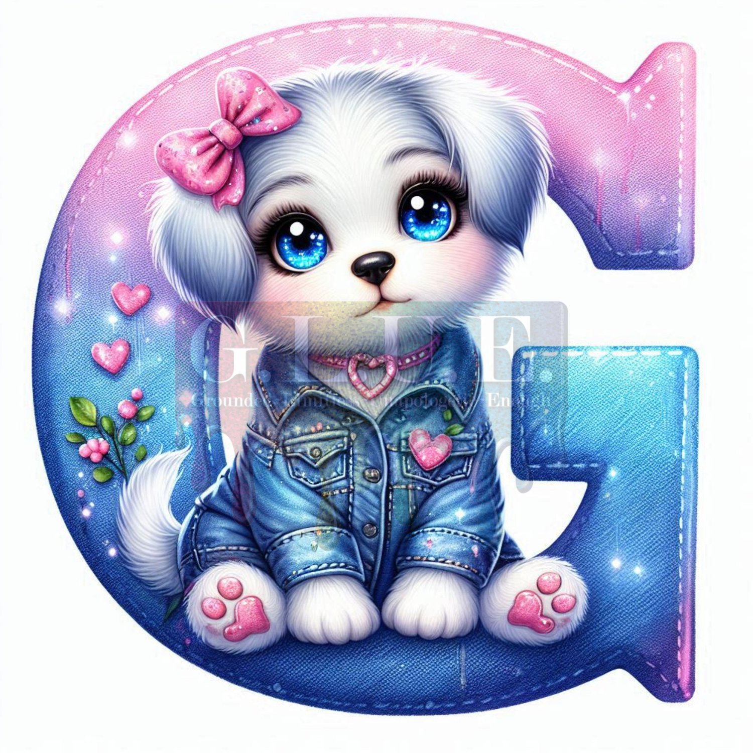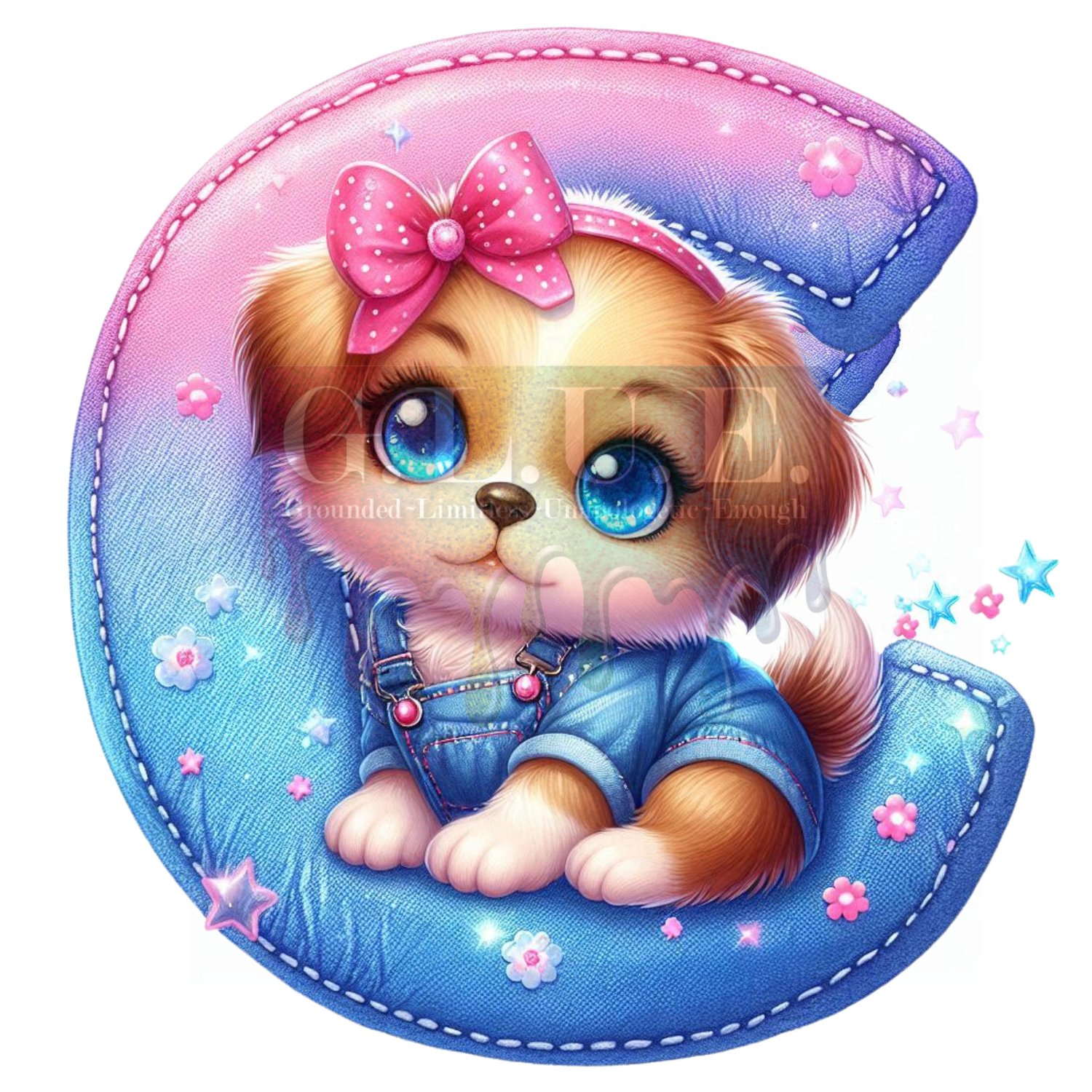 Unleash the cuteness! This Deniim Puppy Alphabet Collection (A-Z) is packed with sweet denim-loving pups, sparkling bows, and charming details that scream "adorable with attitude!" Perfect for custom name designs, baby merch, birthday tees, classroom décor, or personalized gifts. Each letter features a unique pup dressed in glam denim and glitter, making your projects POP with personality and paw-sitive vibes.