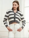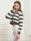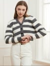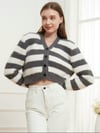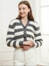 Button Down V-Neck Striped Cardigan