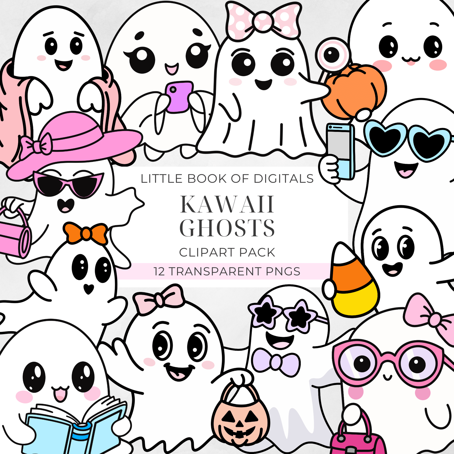 Kawaii Ghosts (Set Of 12 Clipart)