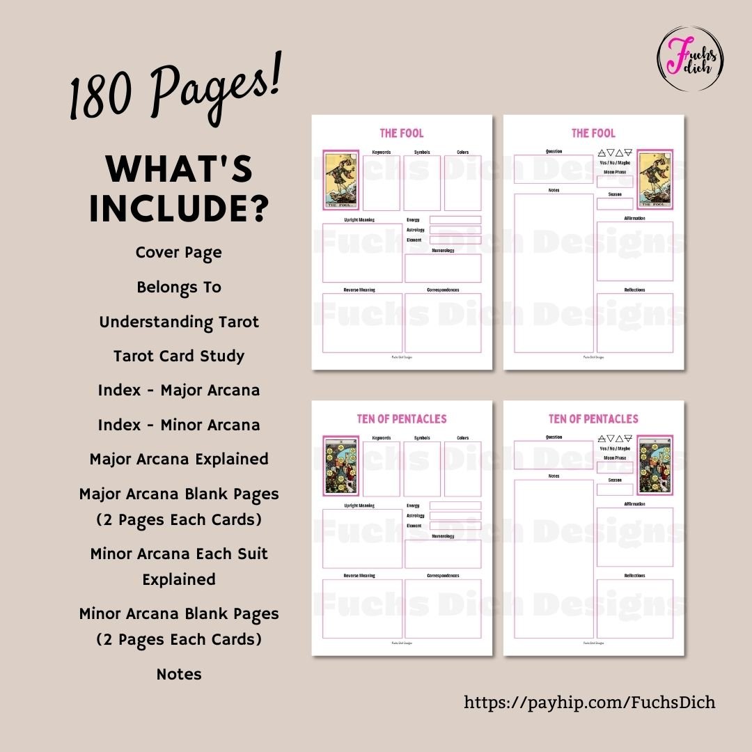 This tarot workbook can be used printed or digitally on your device and will be a perfect addition to your grimoire or book of shadows.