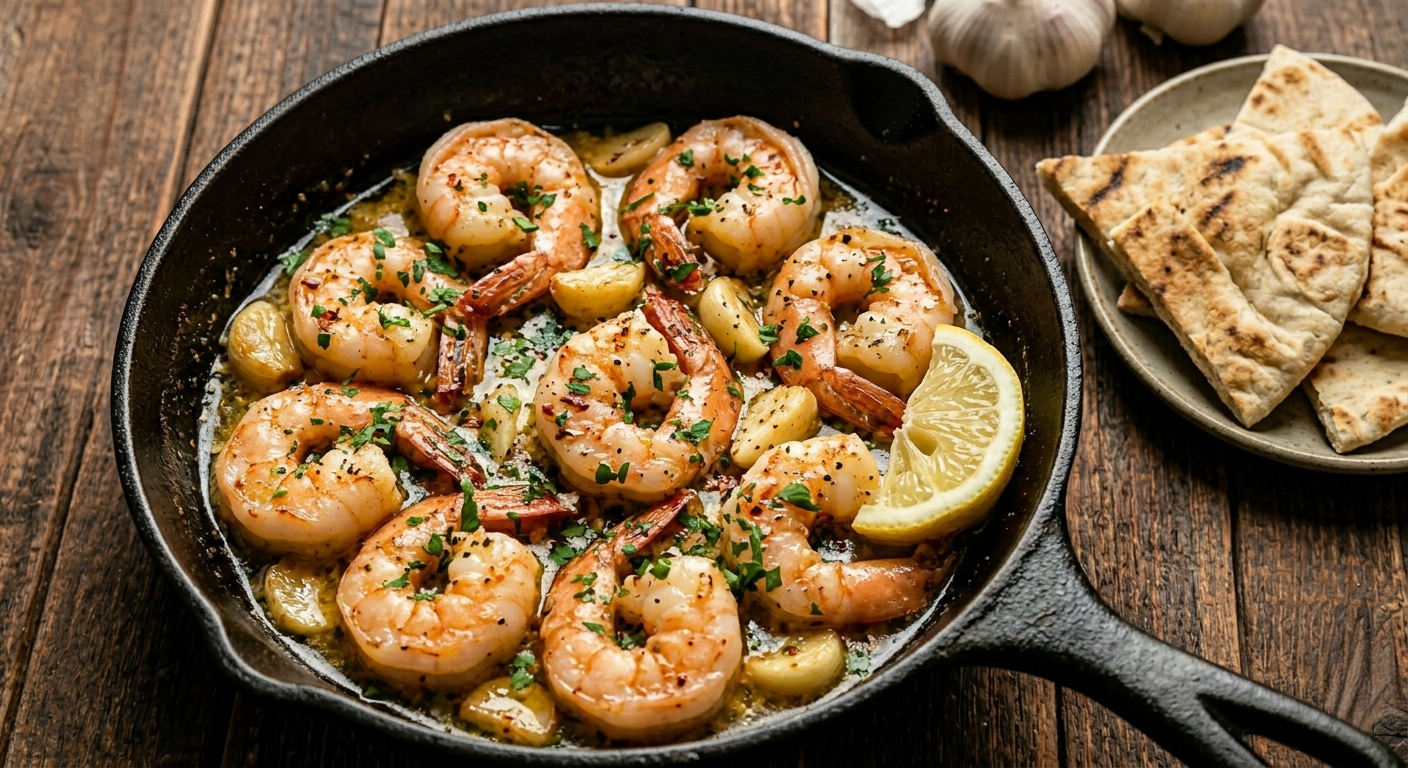 - Garlic Butter Shrimp with Pita- indulgent, buttery, 10 minutes