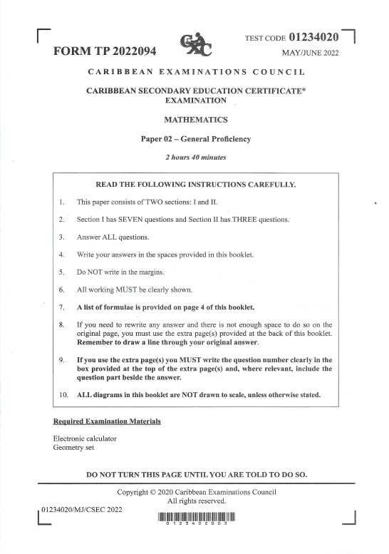 CSEC Maths - June 2022 (Paper 02)