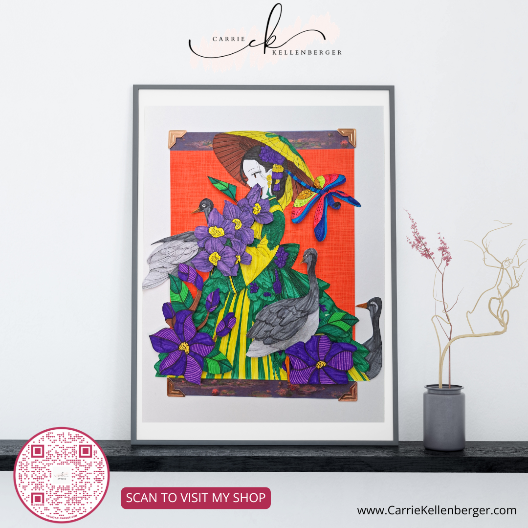 My paper cutting technique adds an extra 3D dimension of beauty and intricacy to each design, making my collages a delightful keepsake. They’re meant to brighten any space: an office cubby, a senior’s bedside, a child’s room, a sunny kitchen, or anywhere your heart desires.