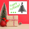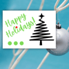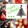 This is great modern Christmas Card that features a minimalist black tree on a white background with a retro font in bright green.