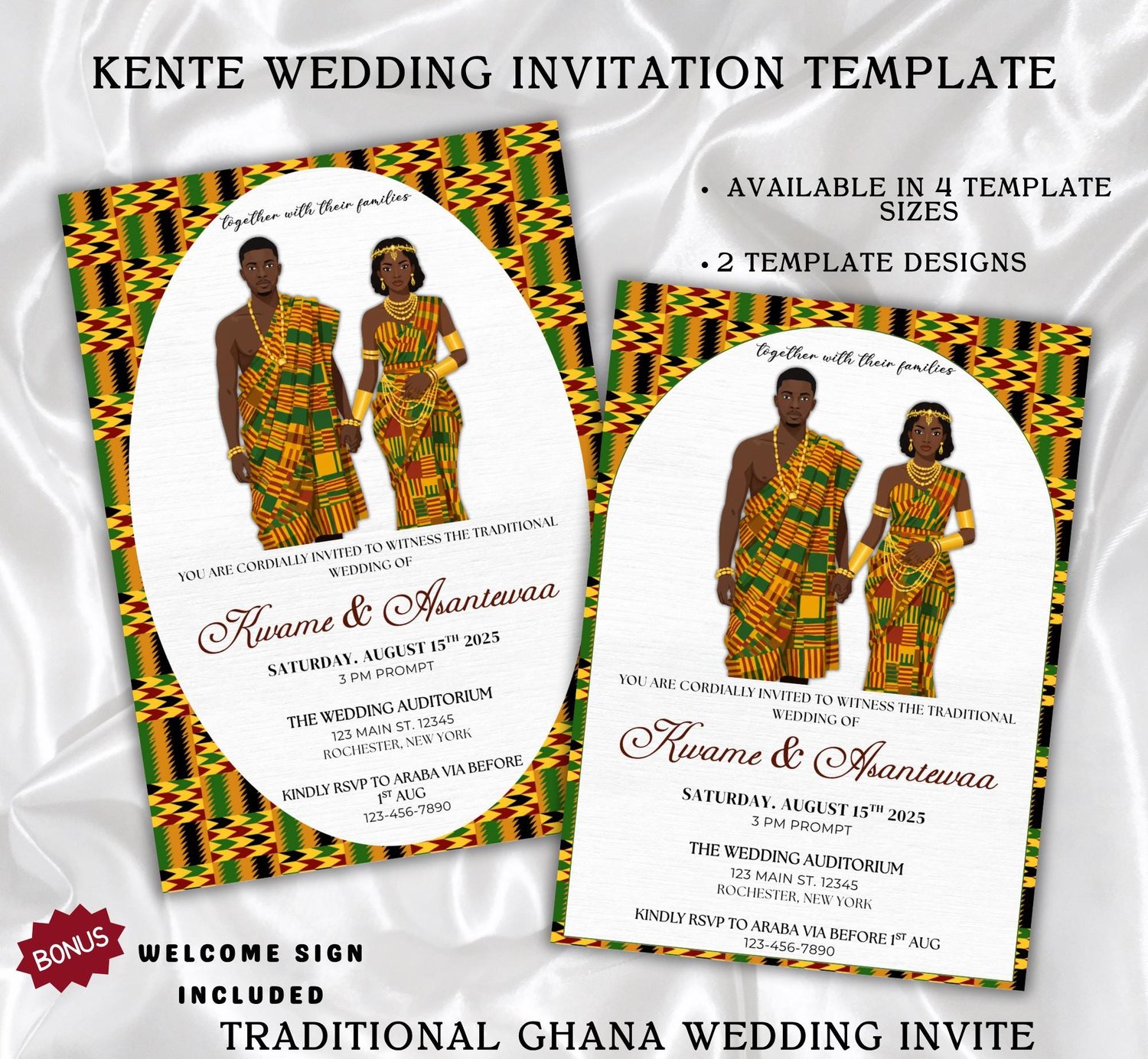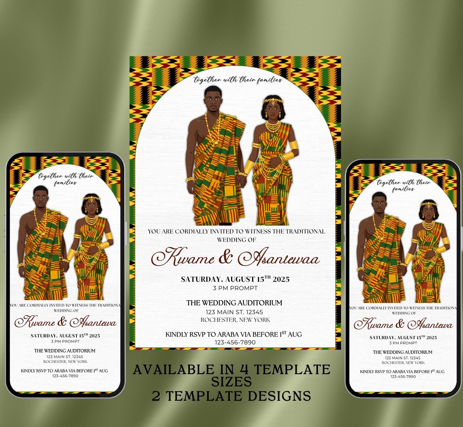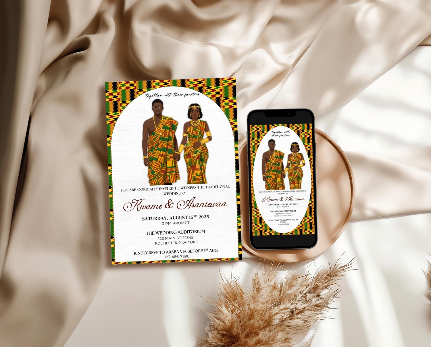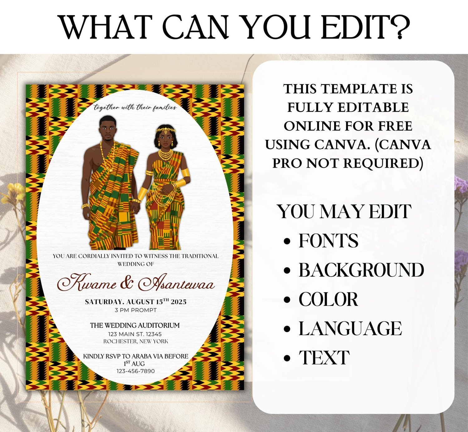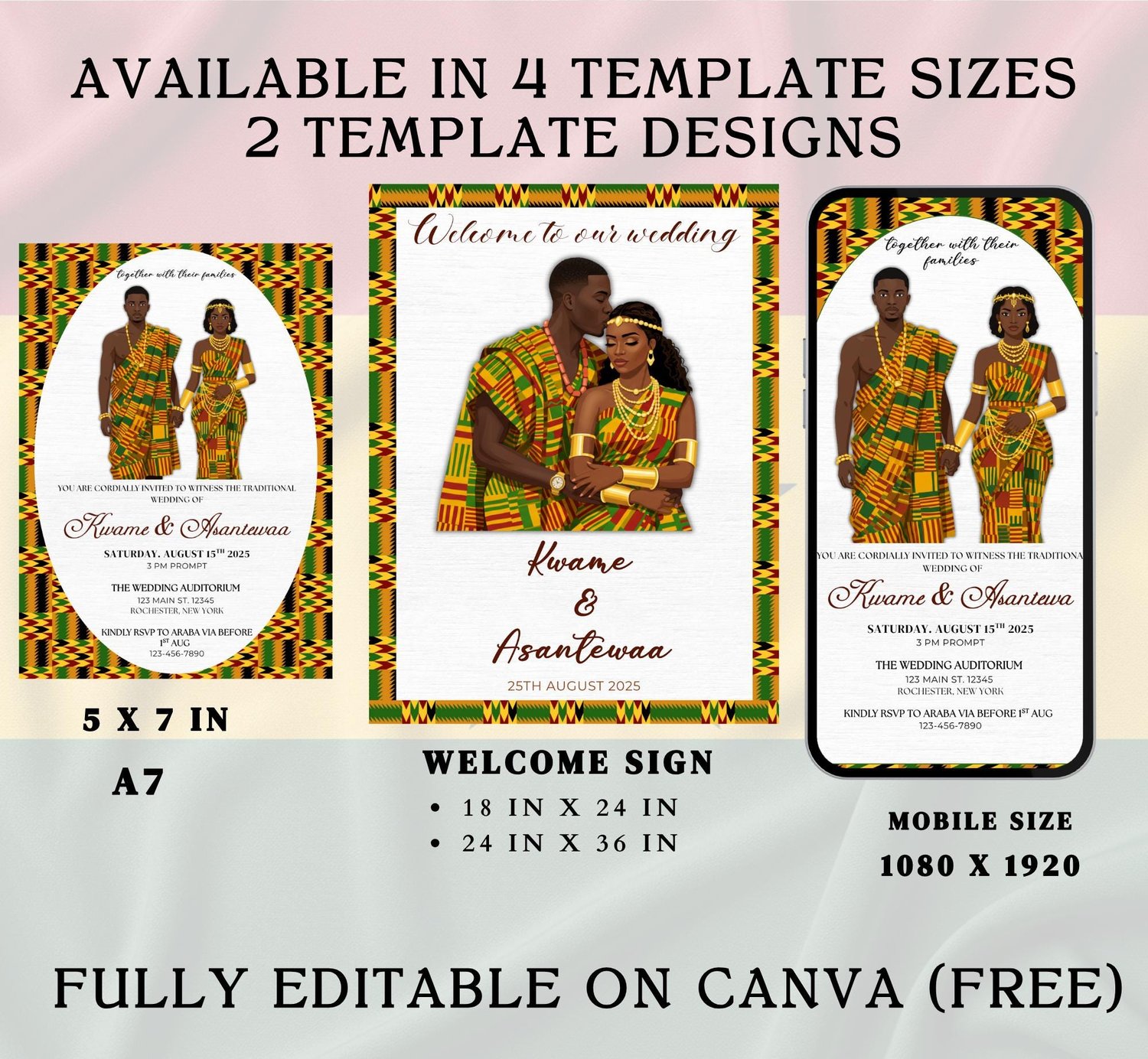 Ghana Kente Wedding Invitation Template: Editable African Engagement Ceremony (Digital Download, Canva)