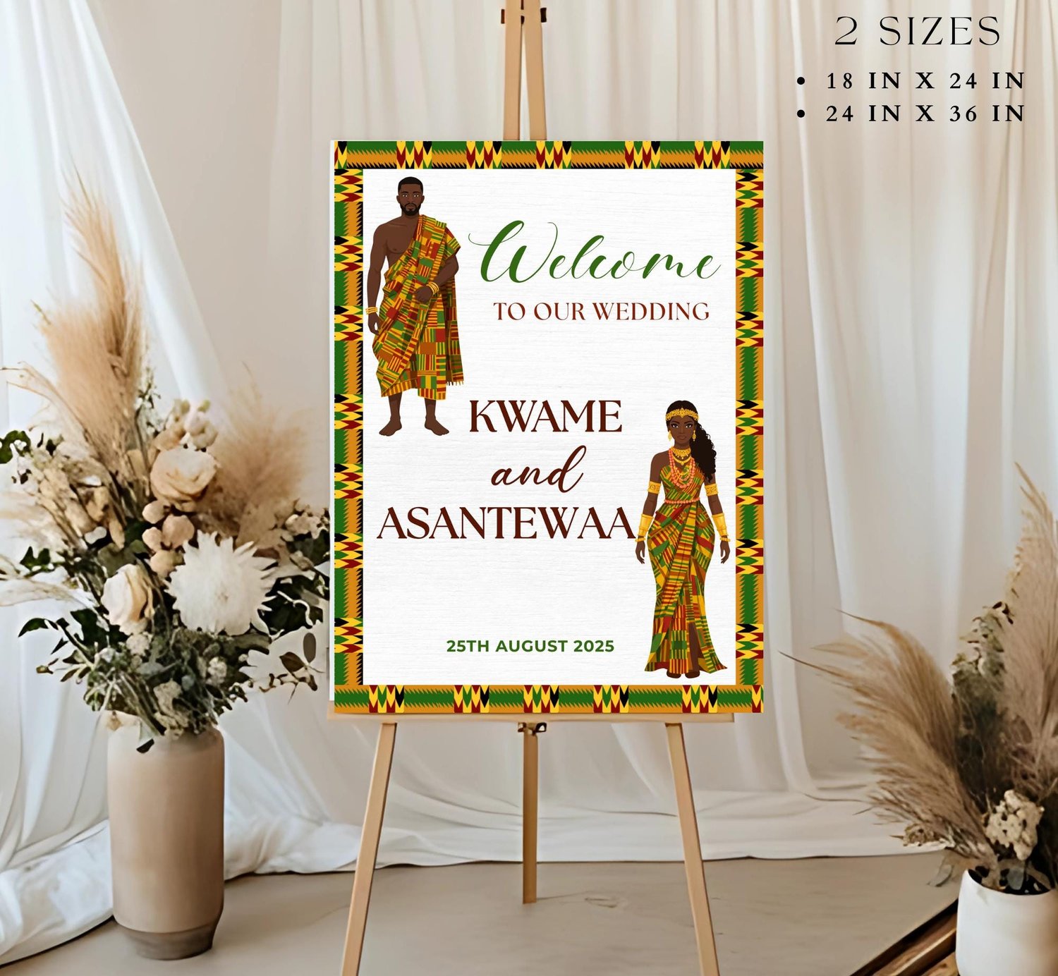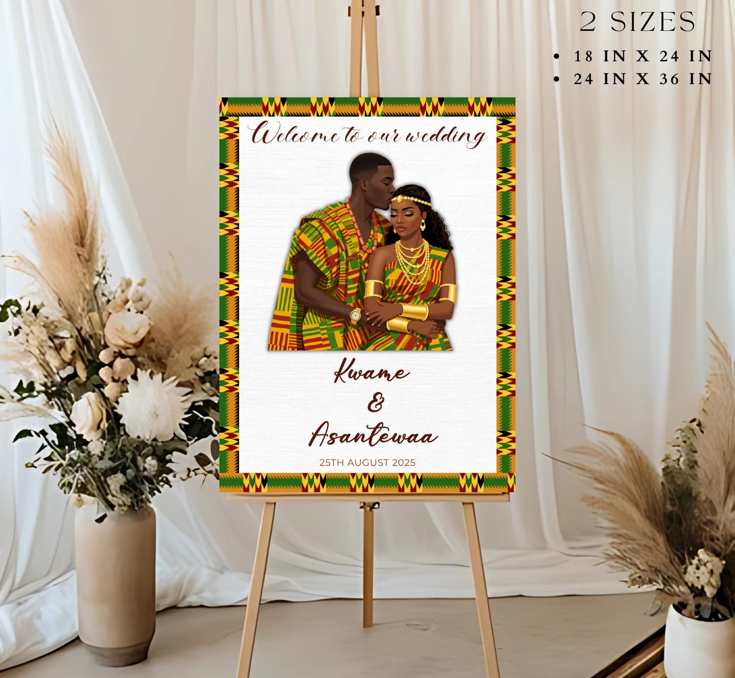 Celebrate your love in style with this Kente Wedding Invitation Template, inspired by the rich culture and vibrant patterns of Ghana. Perfect for traditional weddings, engagement ceremonies, or African-themed celebrations, this beautiful digital invite is fully editable and easy to customize using Canva.