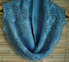 Knit in Sunrays Creations Kshoma, a light-weight linen yarn, the Vyoma Cowl seeks to capture the beauty of the clear blue spring skies: the cables and mesh lace suggest gentle spring breezes and the airy spring mornings and evenings.