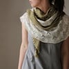 Have you ever lost yourself in the rhythms of knitting? Whiteout is the perfect project for that sort of thing. Intricate, repetitive flurries of crystalline lace edge this asymmetrical triangle scarf, while the soothing garter stitch section allows your mind — and eyes — to relax.