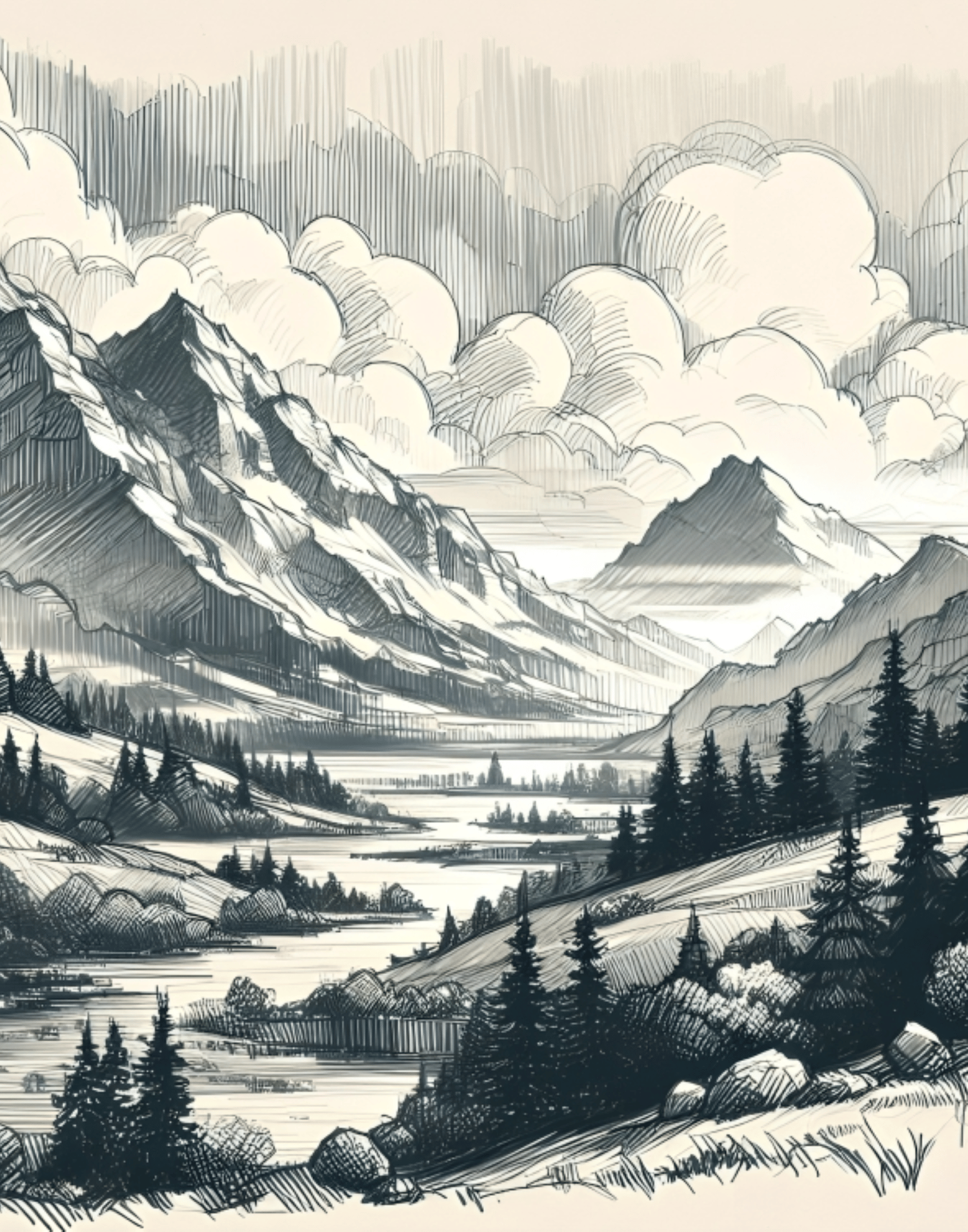 Japanese Style Painting, Forest River, Mountain, Vintage Village, Top Art, Nostalgic Rural life, Nature, Cool Nature, Beautiful Nature, Sunrise, Natural Landscape, Wall Art, Digital Art.