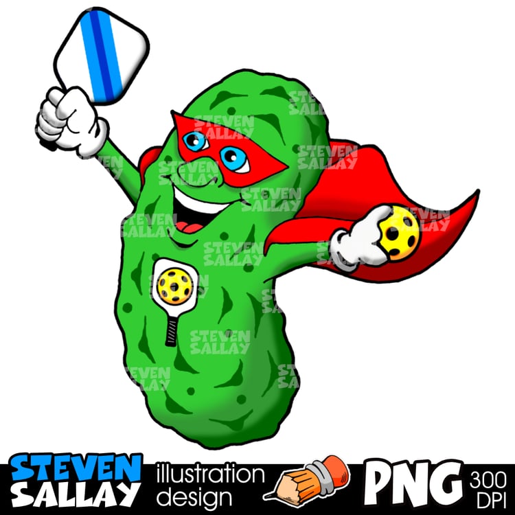 Funny Pickleball Cartoon Clipart – Pickleball Monster PNG Illustration – Commercial Use – Digital Download.