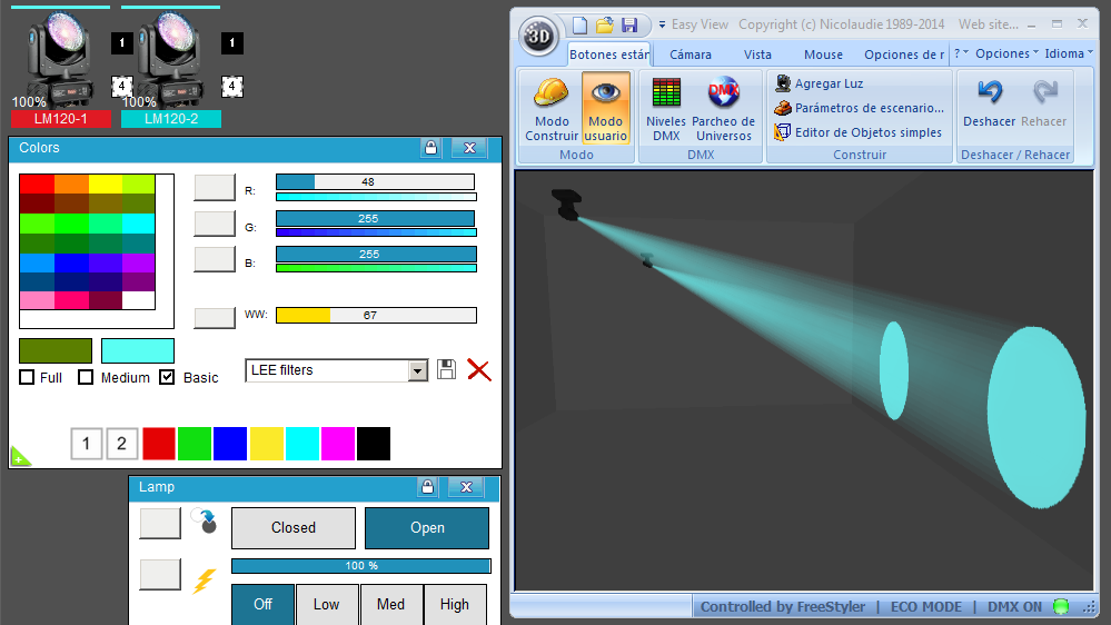 Esta Librería SSL2 está optimizada para trabajar con Magic 3d Easy View. Es decir para ver una representación 3D de las secuencias que estemos realizando con Freestyler, QLC+ o cualquier otro soft que se conecte con Magic 3d.