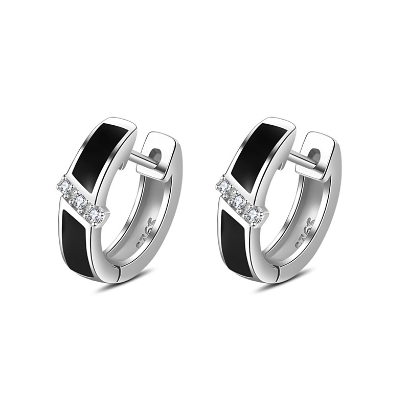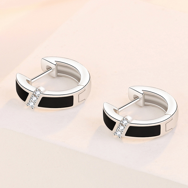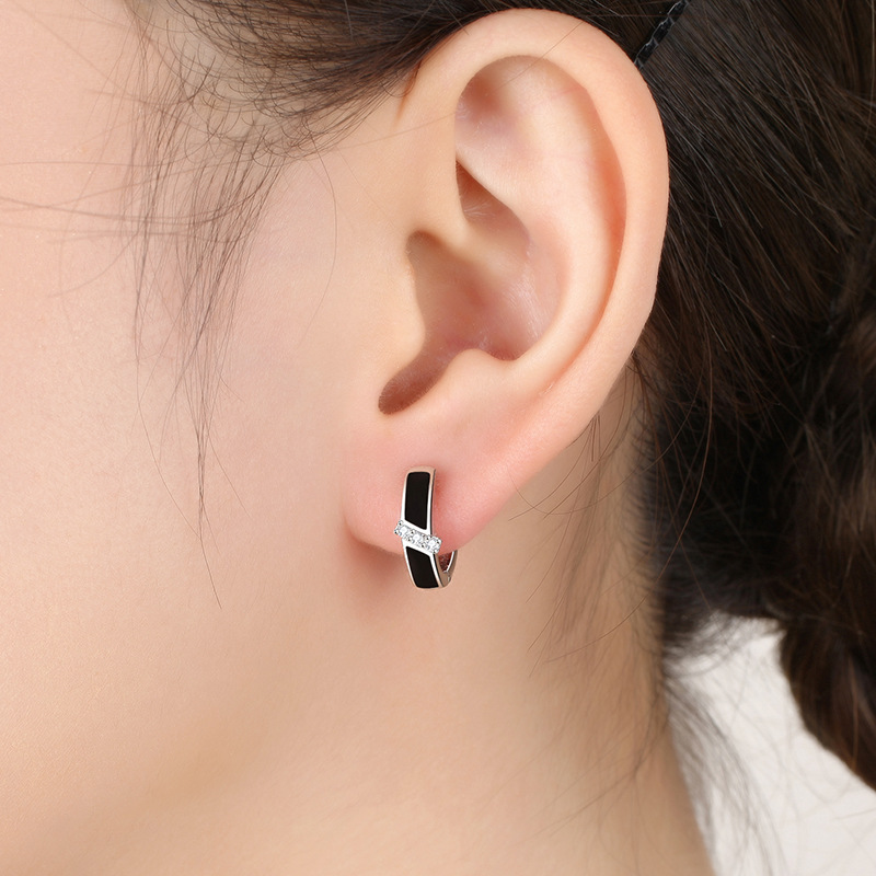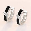 925 Sterling Silver Black Enamel Crystal Hoop Earrings for Women