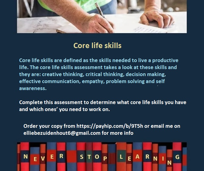Core life skills are defined as the skills needed to live a productive life. The core life skills assessment takes a look at these skills and they are: creative thinking, critical thinking, decision making, effective communication, empathy, problem solving and self awareness.