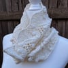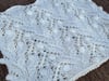 The design is created using basic lace stitches (yarn overs, k2tog, ssk), and also includes a version with optional crocheted bobbles.