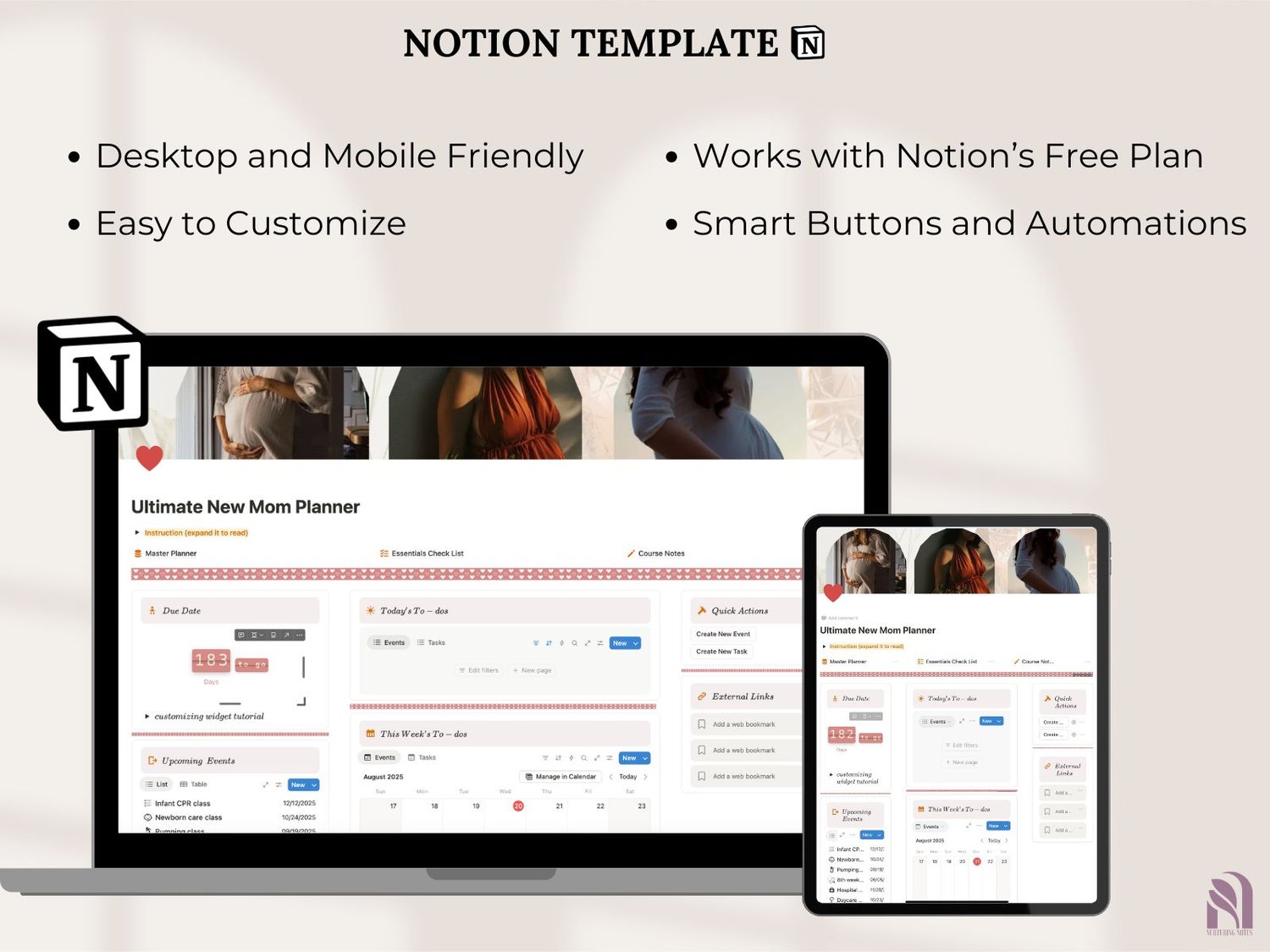 This all-in-one Notion template helps you plan, prepare, and stay organized—from your first trimester to your baby’s first months.